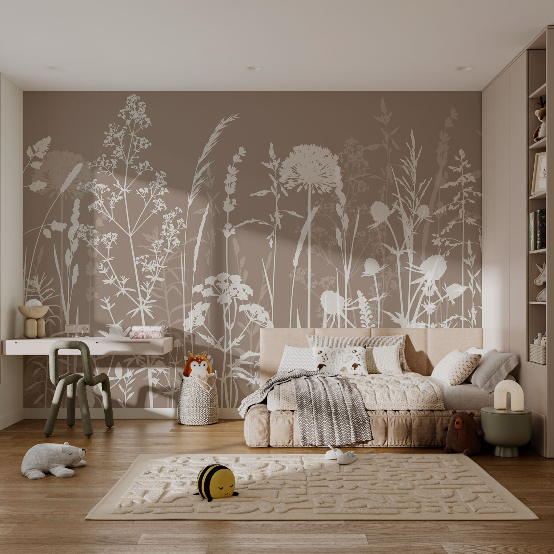 Transform any room into a serene escape with the “Silhouetted Wildflowers on Neutral Background” mural. Imagine waking up to a gentle garden swaying in the breeze—minus the pesky pollen! These delicate, understated wildflowers dance across a soft, neutral backdrop, bringing a touch of nature indoors without the need for a green thumb. It’s like a breath of fresh air for your walls, making it perfect for cozy living rooms or serene bedrooms. Plus, it’ll have guests chatting about how fancy your space looks, even if it’s just your comfy couch and a stack of magazines. This mural’s beauty isn’t just in its design; it invites warmth, tranquility, and a subtle nod to the great outdoors.