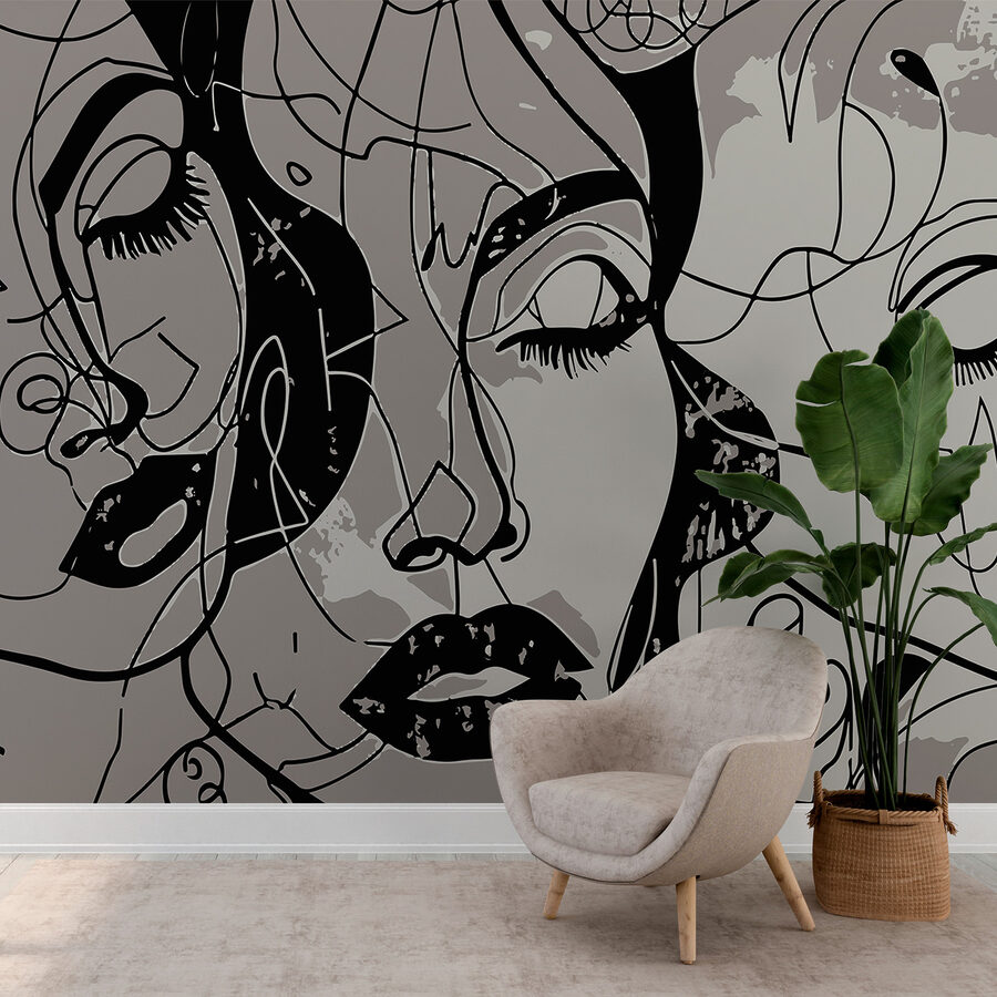 Introducing a stunning black and white mural that captures the essence of elegance and intrigue. This eye-catching piece features a woman’s face, beautifully detailed and wrapped in an abstract flow of lines and shapes. Imagine it brightening up a dull wall or serving as a stunning backdrop for those cozy dinner parties. The contrast and depth bring life to any space, inviting endless conversations. It’s like art that whispers stories—perfect for daydreaming or simply enjoying a quiet moment. Perfect for those who crave a touch of mystery and sophistication in their decor. Transform your walls and watch the compliments roll in!