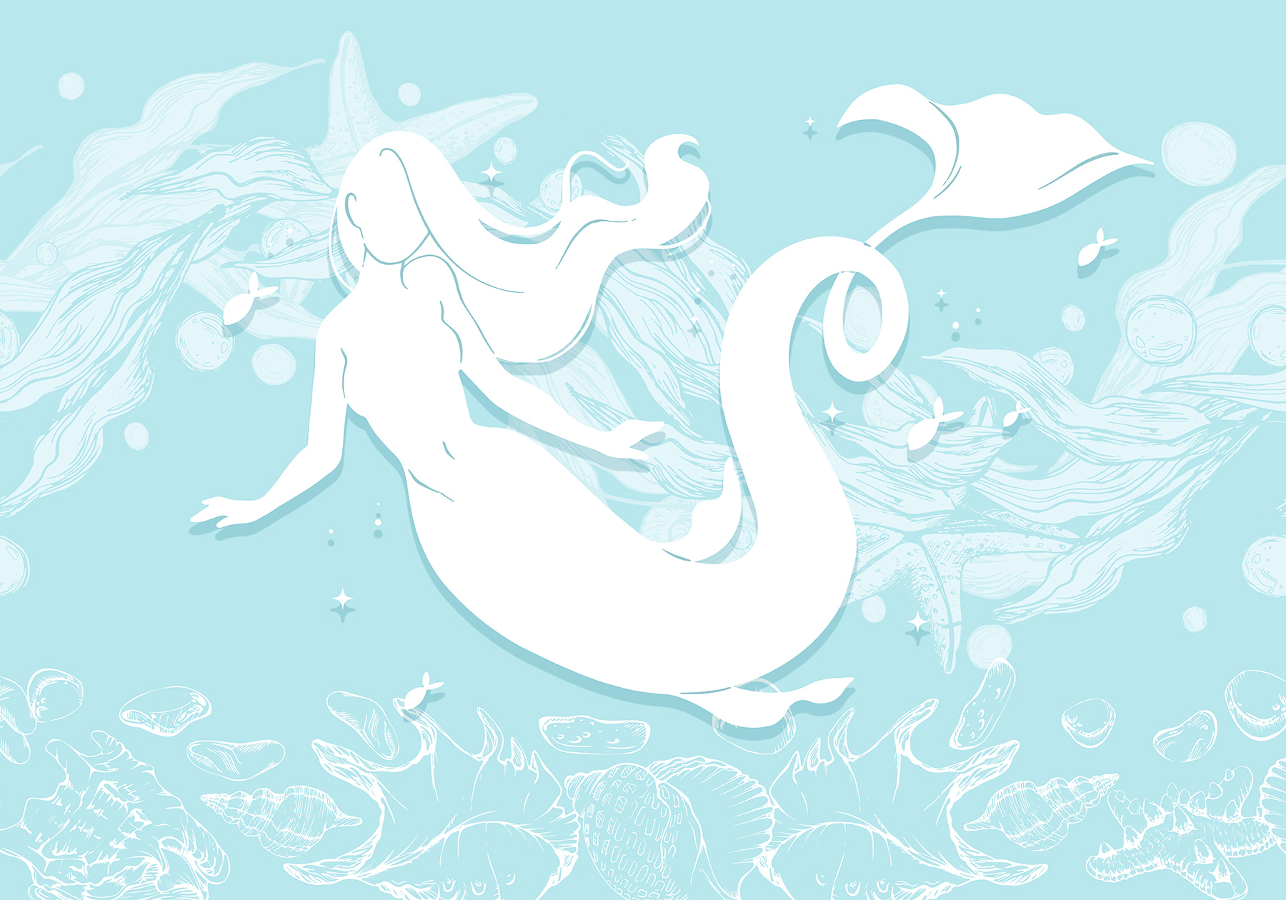 Wall murals White silhouette of a mermaid Wall murals White silhouette of a mermaid