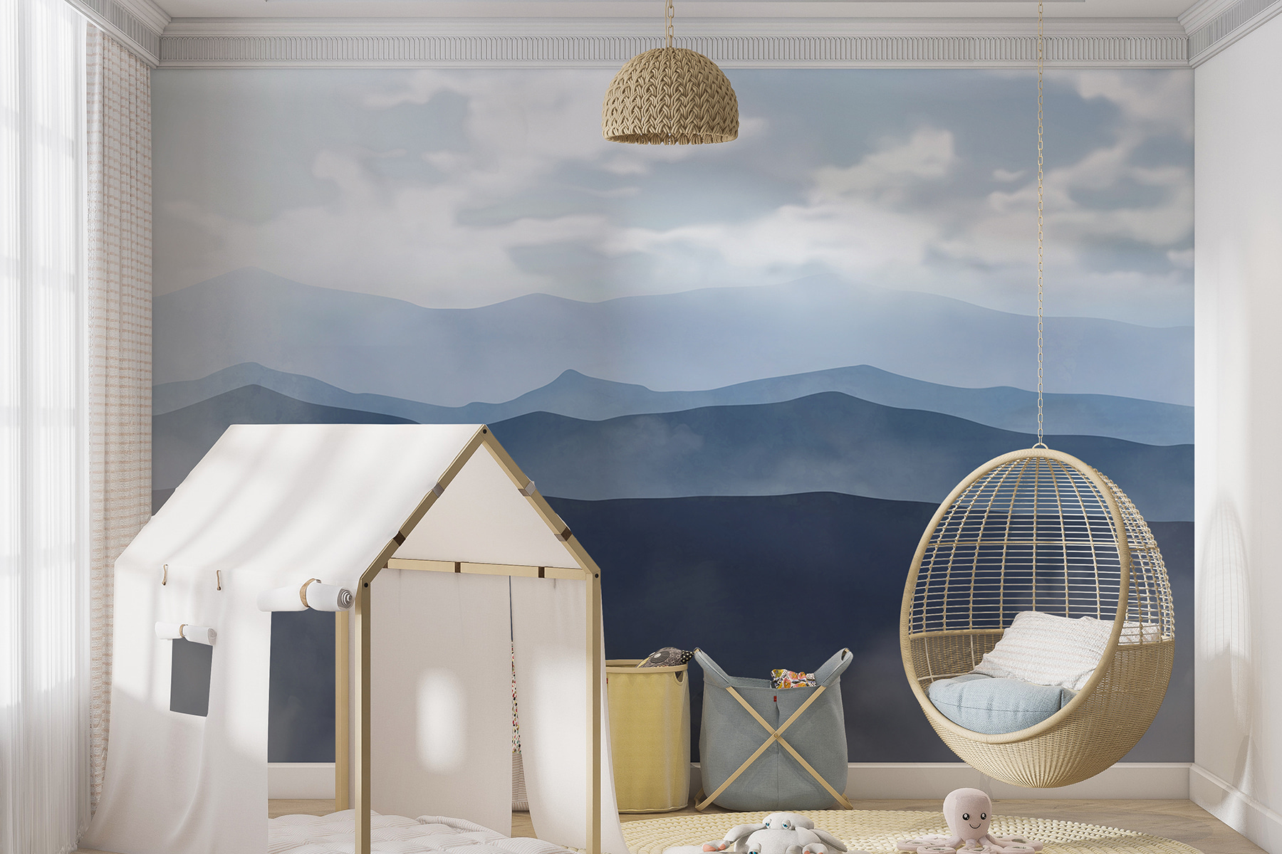 Transform your space into a serene escape with this stunning mural of a mountain range under soft, fluffy clouds. Imagine waking up to those calming hues each morning, as if nature itself is inviting you to take a deep breath. It’s like having a window to the great outdoors—without the need for hiking boots! The layers of muted blues create a peaceful vibe that’s perfect for a cozy reading nook or a tranquil bedroom. Friends might even ask if you’ve relocated to a cute cabin in the woods. It’s not just decor; it’s an escape right at home!
