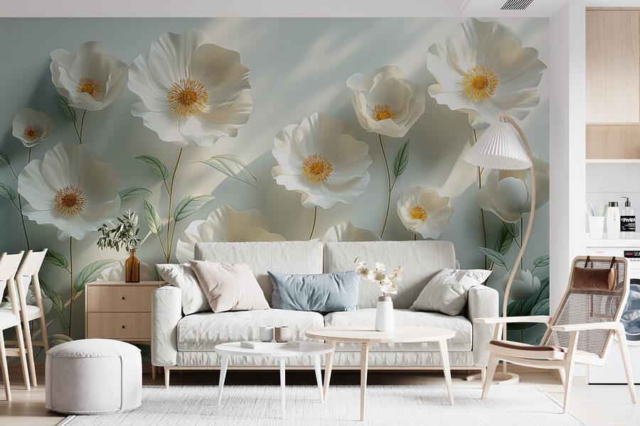 Transform any room with this delightful mural featuring a group of elegant white flowers and their lush green leaves. Imagine stepping into a personal garden every day. It’s like nature took a little detour into your home, bringing fresh vibes and a dash of cheer. Perfect for those who crave a light, airy feel, this mural can make any space feel more open and inviting. Picture it brightening up a cozy reading nook or adding charm to a dining area. Who wouldn’t want to sip their coffee surrounded by such beauty? Just a gentle reminder—nature doesn’t ask for upkeep, so sit back, relax, and let the floral magic work its wonders.