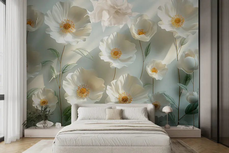 Transform any room with this delightful mural featuring a group of elegant white flowers and their lush green leaves. Imagine stepping into a personal garden every day. It’s like nature took a little detour into your home, bringing fresh vibes and a dash of cheer. Perfect for those who crave a light, airy feel, this mural can make any space feel more open and inviting. Picture it brightening up a cozy reading nook or adding charm to a dining area. Who wouldn’t want to sip their coffee surrounded by such beauty? Just a gentle reminder—nature doesn’t ask for upkeep, so sit back, relax, and let the floral magic work its wonders.
