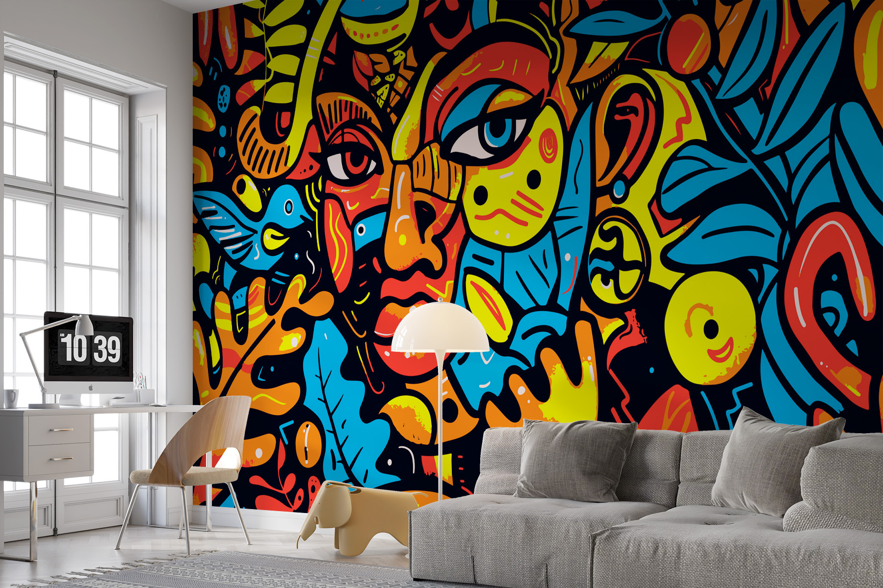 Brighten up any room with this vibrant mural, “Wall Murals Colorful Art of a Face.” It’s not just a splash of color; it’s a burst of personality! Picture it transforming a blank wall into a lively conversation starter. The bold colors and eclectic patterns bring life to spaces, making everyone feel a little more cheerful. Imagine unwinding after a long day, gazing at this lively artwork, and feeling every shade telling a story. Whether it graces a living room or a cozy nook, it’s the perfect way to add a sprinkle of creativity and joy to your home. Who knew a wall could be so expressive?