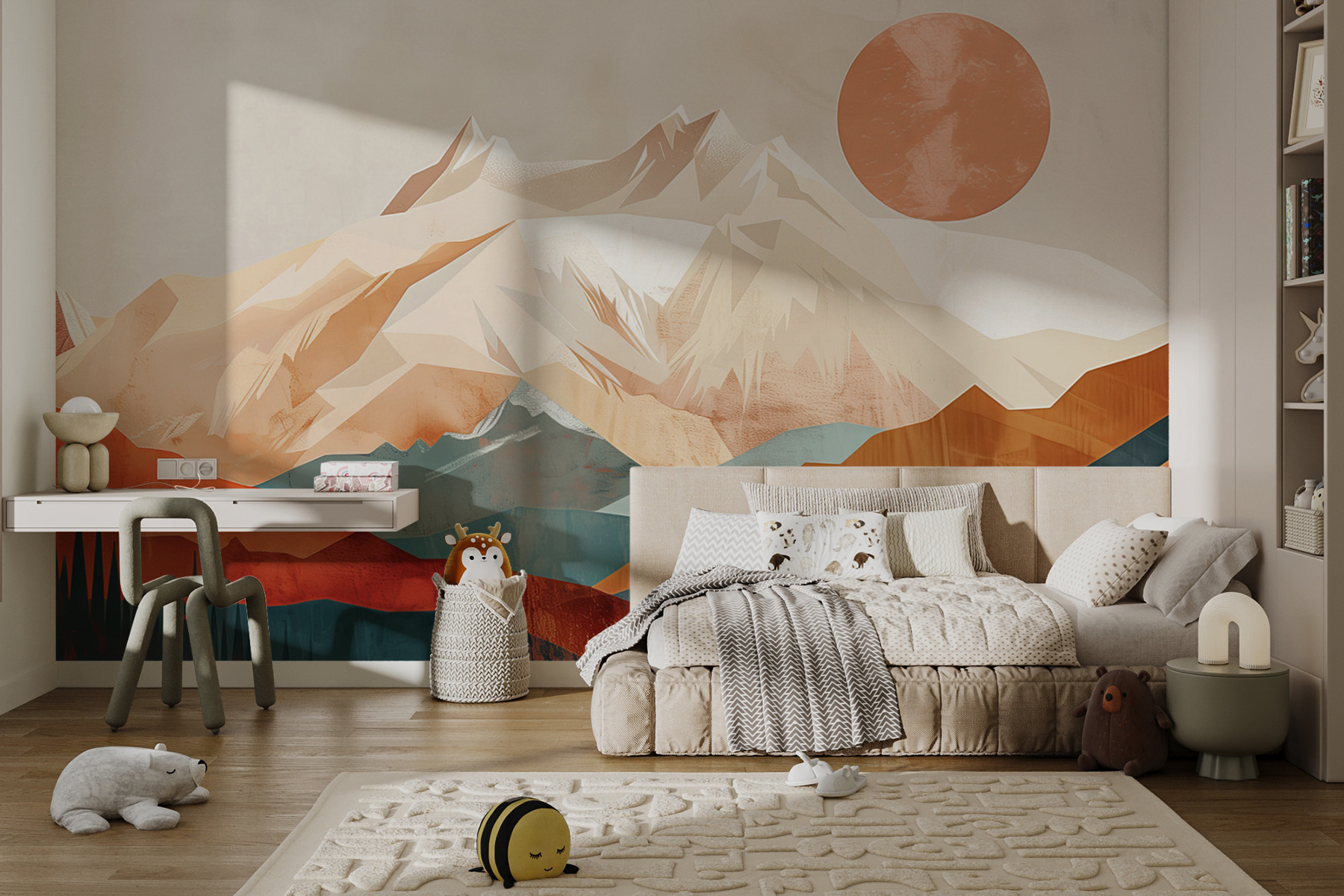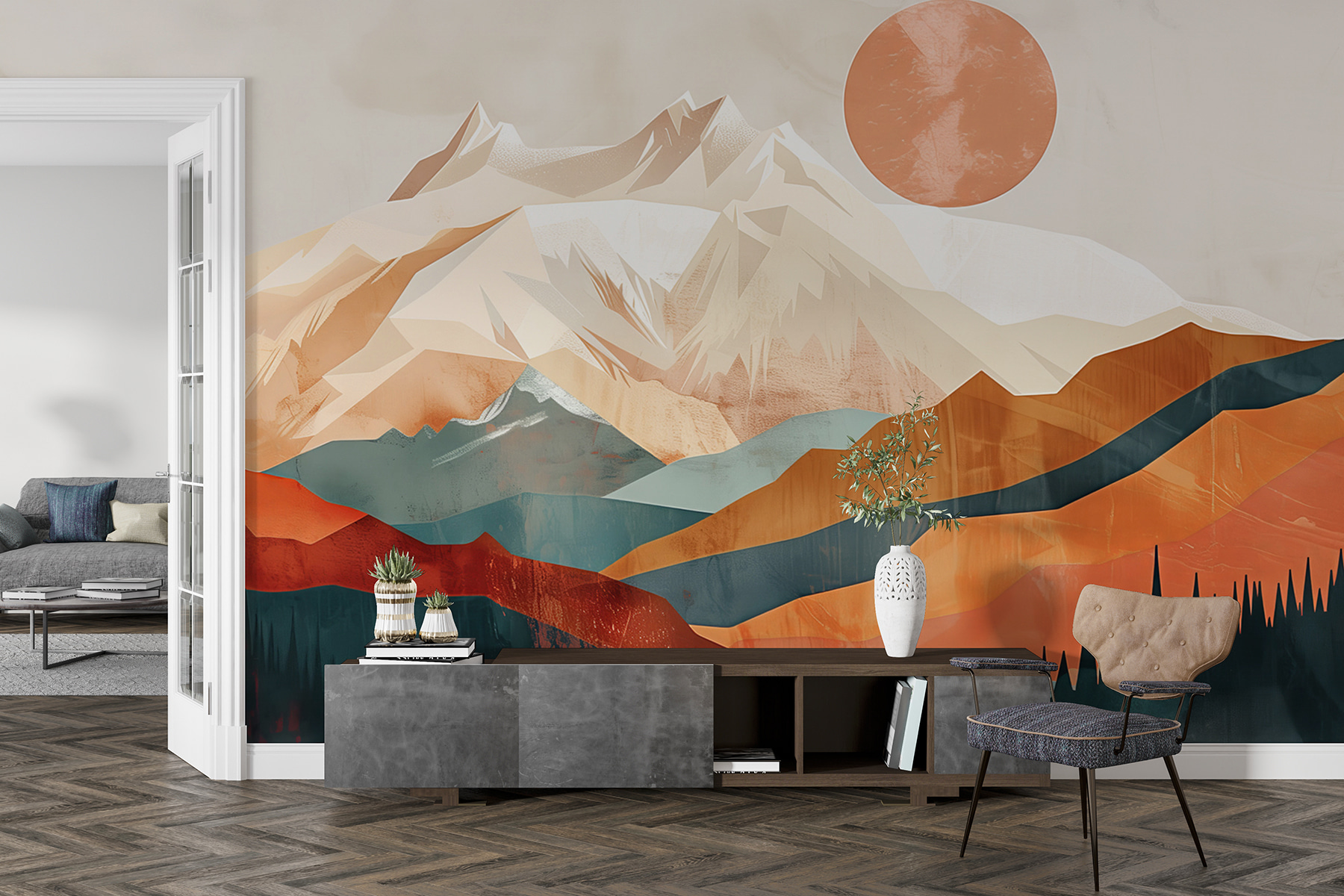 Imagine strolling into a room and being greeted by a breathtaking mountain landscape mural. This isn’t just any wall decoration; it’s your personal escape to nature. The warm oranges and cool blues blend beautifully, creating a serene vibe that whispers relaxation. Picture sipping your morning coffee here—where every glance feels like a mini-vacation. The tranquil lake and majestic trees might just inspire a longing for outdoor adventures, or at least a cozy spot on the sofa with a good book. Turn that ordinary wall into a stunning backdrop that sparks joy and conversation—who needs real mountains when you’ve got this? Perfect for nature lovers or anyone wanting a little more zen in their life.