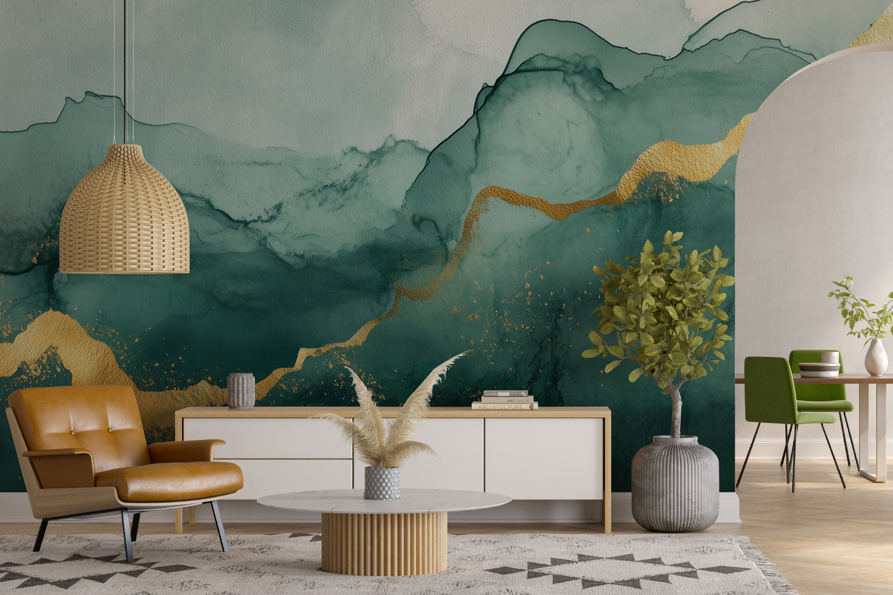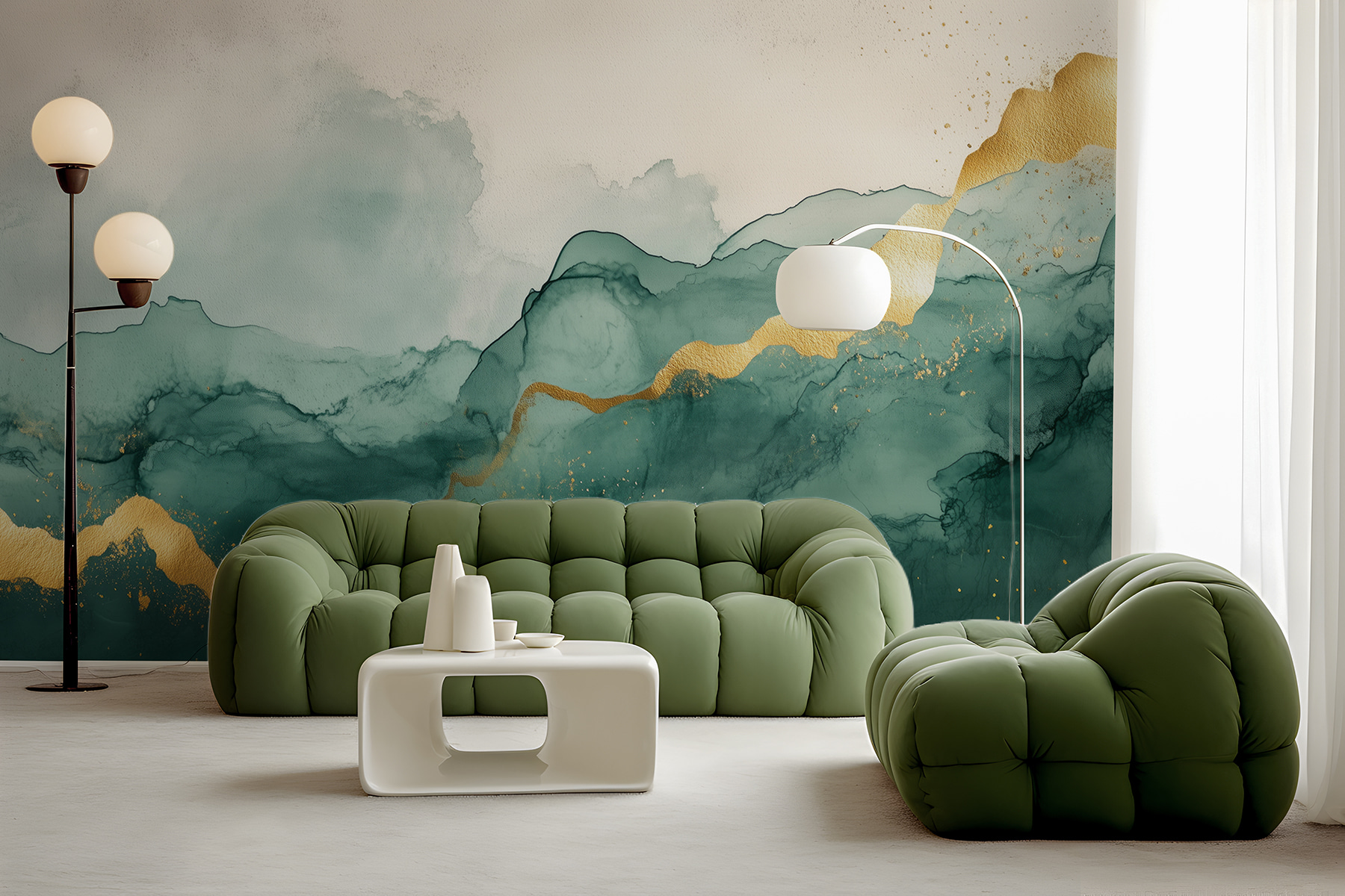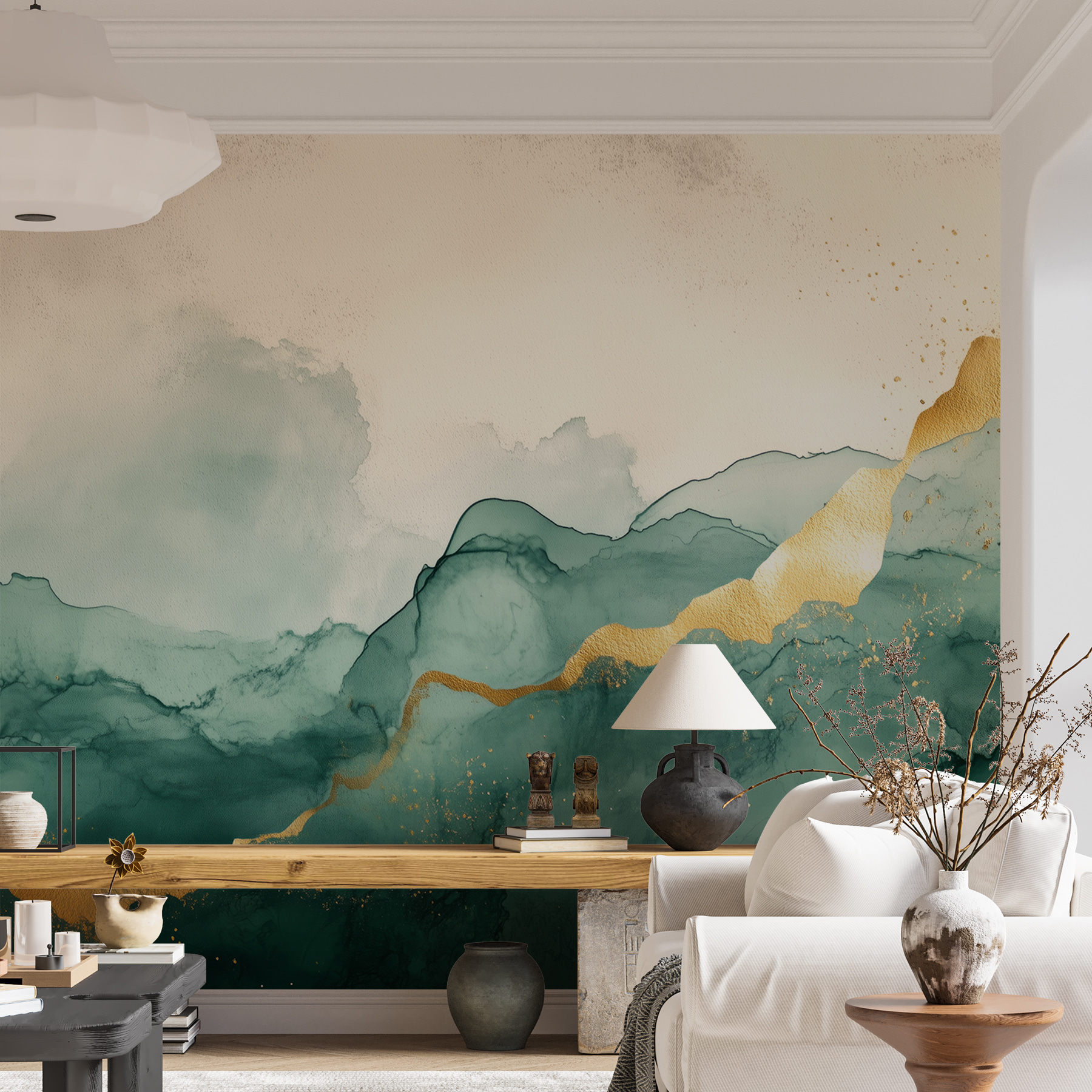 Transform your space with this stunning wall mural, featuring misty mountains accented with warm hues. Imagine walking into a room that feels like a calming retreat with nature right at your fingertips. The gentle swirls of color create a serene atmosphere, perfect for lounging with a good book or sipping tea while staring into the distance—daydreams encouraged! The artistic blend of shapes and shades can spark creativity or bring a sense of peace. It’s like bringing the great outdoors inside, minus the mosquitoes! Whether it’s a cozy living room or a stylish office, this mural adds a unique touch that invites compliments and sparks conversations. Plus, who doesn’t love a little adventure in their decor?