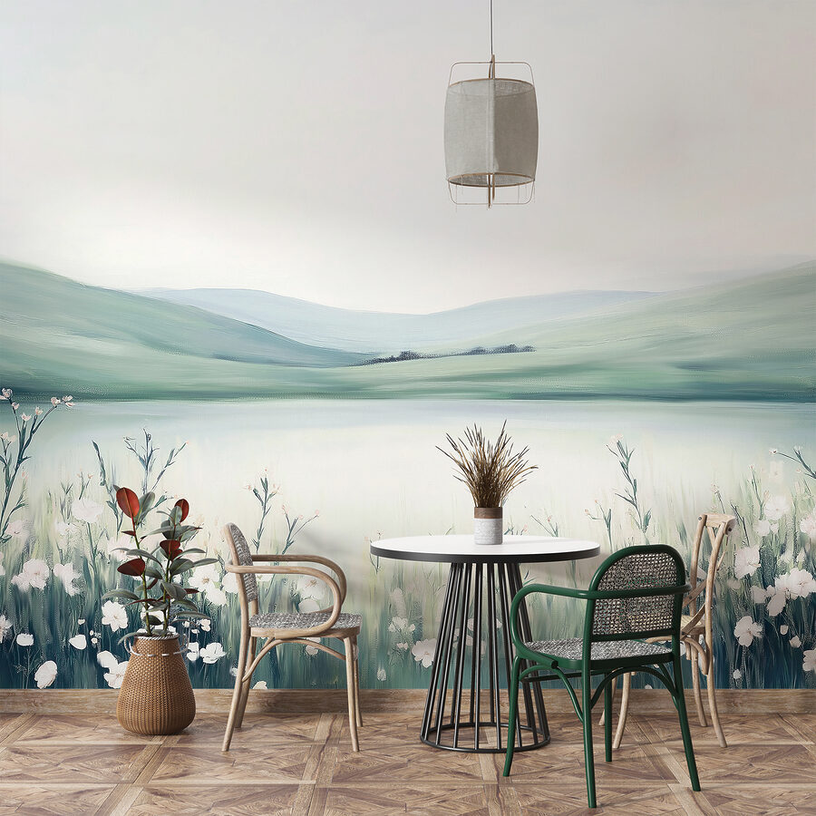 Transform any room into a serene escape with this beautiful wall mural of a field of flowers. Imagine waking up to gentle greens and soft whites that feel like a breath of fresh air. This artwork’s calming vibes make it perfect for a cozy reading nook or an energetic home office—who doesn’t love a touch of nature while tackling that to-do list? It’s like having a little piece of the great outdoors indoors, minus the pesky bugs. Perfect for nature lovers, it brings warmth and tranquility into your space, making every glance a sweet moment of peace.