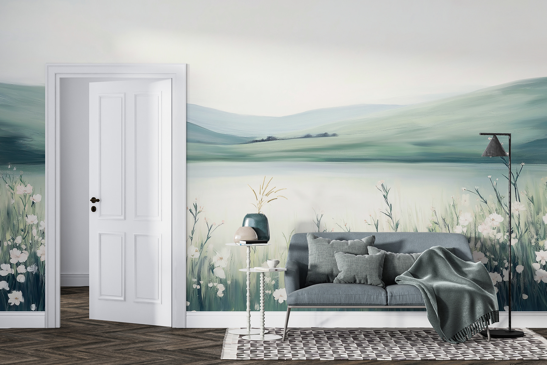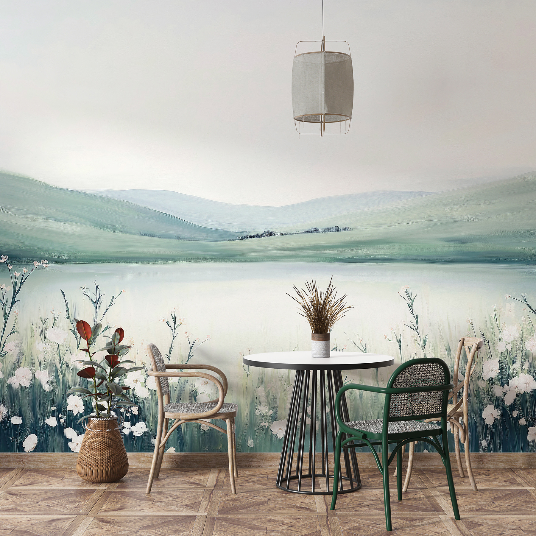 Transform any room into a serene escape with this beautiful wall mural of a field of flowers. Imagine waking up to gentle greens and soft whites that feel like a breath of fresh air. This artwork’s calming vibes make it perfect for a cozy reading nook or an energetic home office—who doesn’t love a touch of nature while tackling that to-do list? It’s like having a little piece of the great outdoors indoors, minus the pesky bugs. Perfect for nature lovers, it brings warmth and tranquility into your space, making every glance a sweet moment of peace.