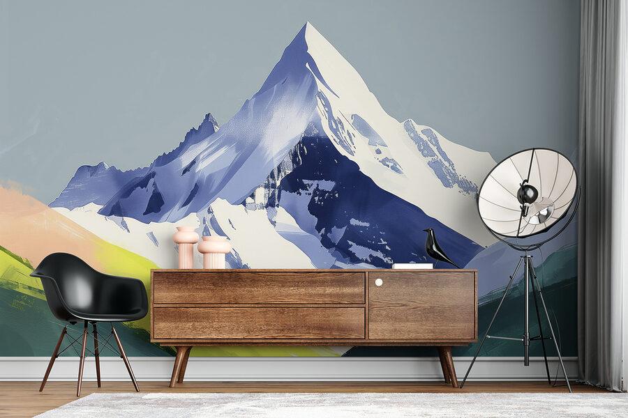 Transform any room into a serene escape with this wall mural featuring majestic mountains draped in snow, nestled beside lush green hills. Imagine settling in with a warm cup of tea, as these stunning peaks turn your wall into a window to nature. It’s like bringing a bit of the great outdoors right into your home, minus the hiking boots! The colors pop with fresh energy, sparking adventures in the mind. Perfect for cozy living spaces or even a calming office vibe. Why not let these mountains inspire daydreams or friendly chats about your next getaway? A mural like this can make any space feel alive and inviting, creating not just a room, but a journey.