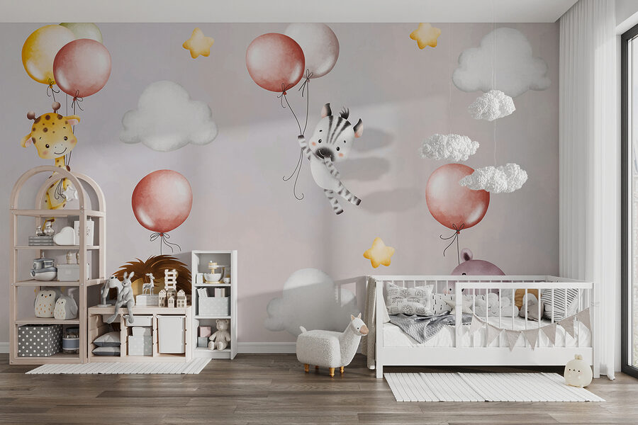 Bring a sprinkle of joy to your walls with the delightful “Wall Murals Wallpaper with Animals and Balloons.” Imagine a giraffe, zebra, lion, and hippo—each happily floating with their colorful balloons and fluffy clouds. It’s like a whimsical parade that invites smiles and giggles. Perfect for a kid’s room, playroom, or even a cozy reading nook, this mural adds a playful charm. Just picture little ones gazing at it, their imaginations soaring alongside these cheerful critters. It’s a gentle reminder that life is full of wonder—like those moments when you catch a glimpse of something that makes you smile unexpectedly. Step into a world of fun, where every day feels like a celebration!