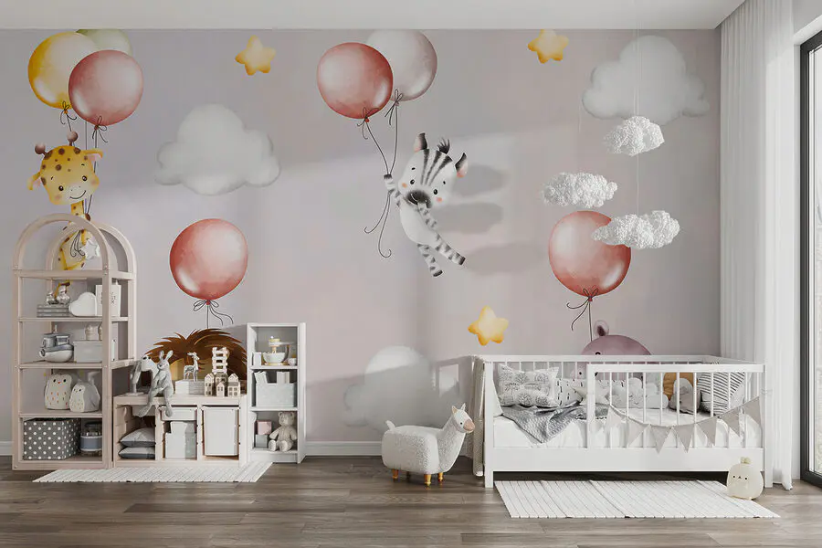 Bring a sprinkle of joy to your walls with the delightful “Wall Murals Wallpaper with Animals and Balloons.” Imagine a giraffe, zebra, lion, and hippo—each happily floating with their colorful balloons and fluffy clouds. It’s like a whimsical parade that invites smiles and giggles. Perfect for a kid’s room, playroom, or even a cozy reading nook, this mural adds a playful charm. Just picture little ones gazing at it, their imaginations soaring alongside these cheerful critters. It’s a gentle reminder that life is full of wonder—like those moments when you catch a glimpse of something that makes you smile unexpectedly. Step into a world of fun, where every day feels like a celebration!