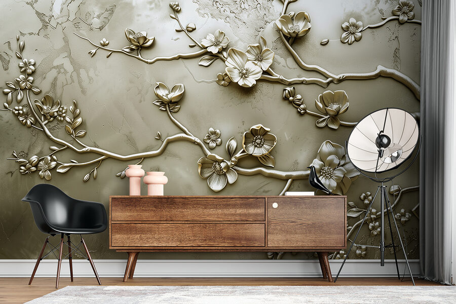 Transform your space with this stunning wall mural featuring elegant flowers and graceful branches. It’s like letting a peaceful garden blossom right onto your walls. Imagine sipping tea in a room that feels like an endless spring, where each petal whispers calmness. The soft tones and intricate details add a touch of sophistication—perfect for jazzing up a cozy nook or spicing up your living room. Friends will wander in, pause, and say, “Wow, is this a botanical gallery?” It’s not just decor; it’s a breath of fresh air for your home!