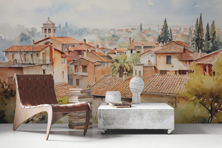 Transform your space with this stunning watercolor mural that captures a charming town alive with character. Picture this: trees swaying gently in the breeze, vibrant buildings that seem to tell stories of their own, and a dreamy sky that brightens even the dullest days. It’s like having a miniature vacation spot right on your wall. Perfect for living rooms, cozy nooks, or even a study where you can pretend to be working while daydreaming about distant places. Just imagine sipping coffee, gazing at this serene scene—it’s a little escape right at home. Perfect for anyone wanting to add a splash of color and a hint of adventure!