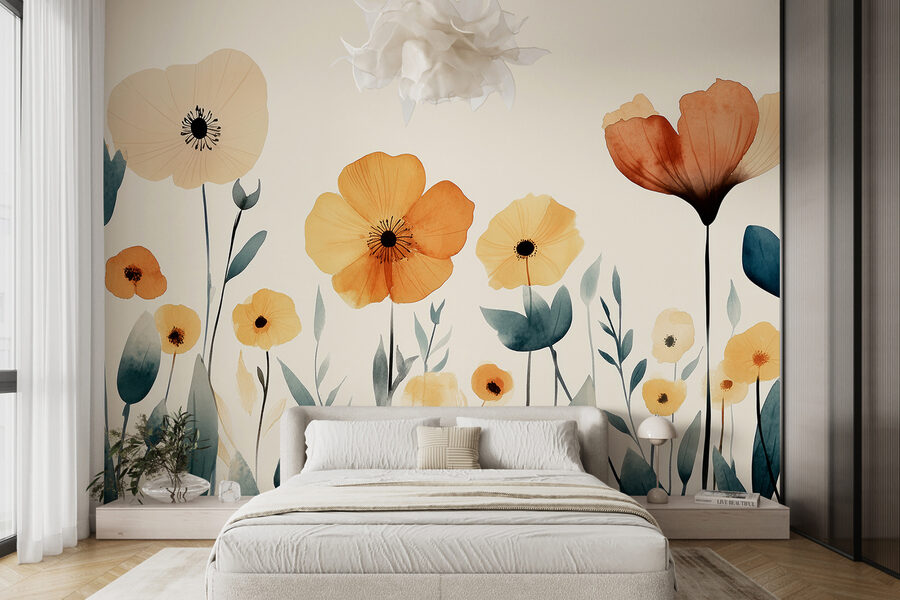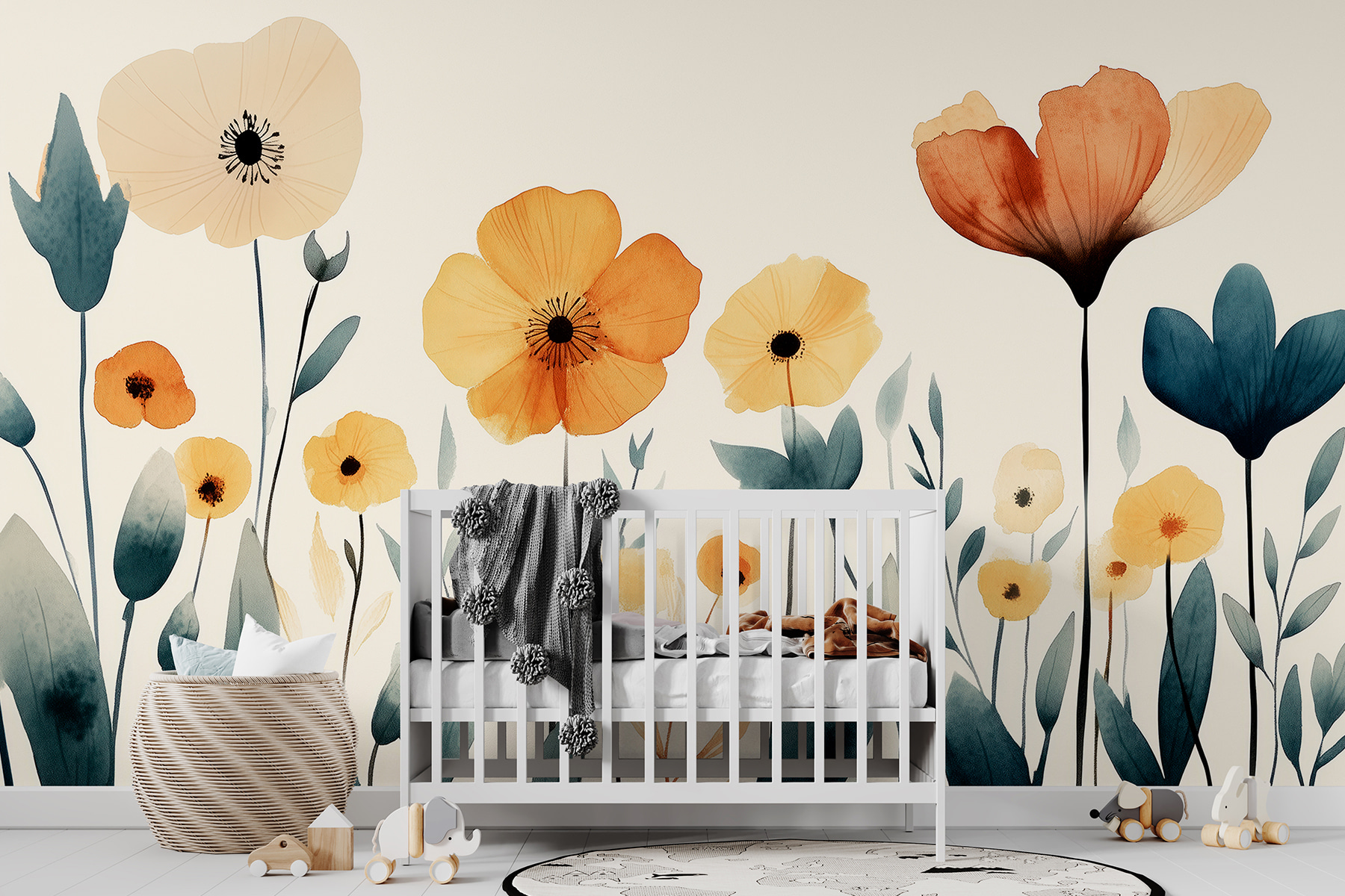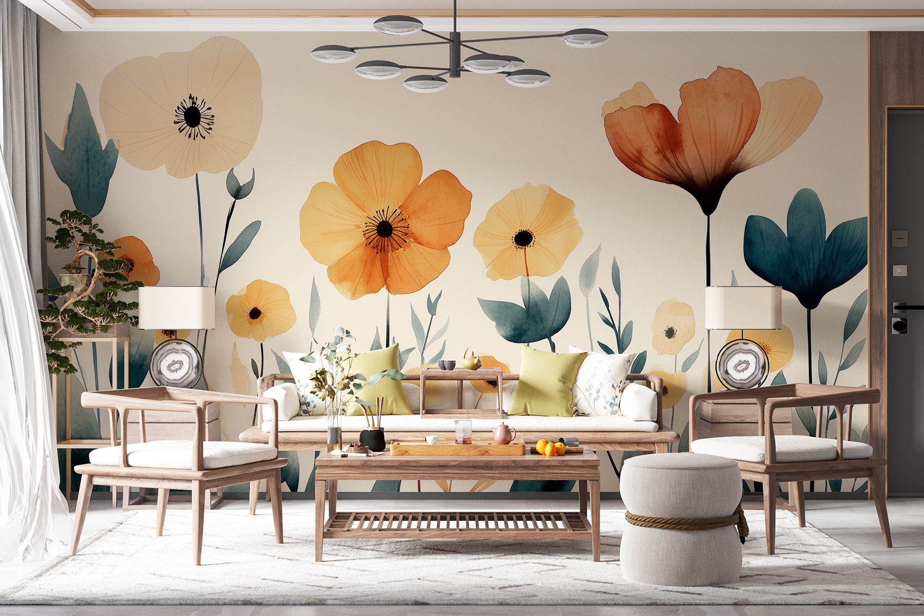 Transform any space with this delightful wall mural featuring a group of flowers and leaves that promise to brighten your day. Imagine walking into a room and feeling like you’ve stepped into a sunlit garden, where every petal seems to dance in the breeze. The soft colors—gentle yellows and earthy tones—are like a warm hug for your walls, making it perfect for living rooms, bedrooms, or even a cozy nook where those great reading sessions happen. It’s almost like the flowers whisper, “Hey, take a breath; life’s beautiful!” Plus, who wouldn’t want to share their space with a botanical beauty that never wilts? So go ahead—let this mural bring a bit of nature right into your home!