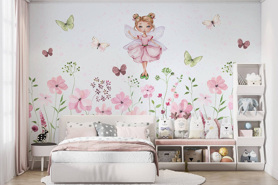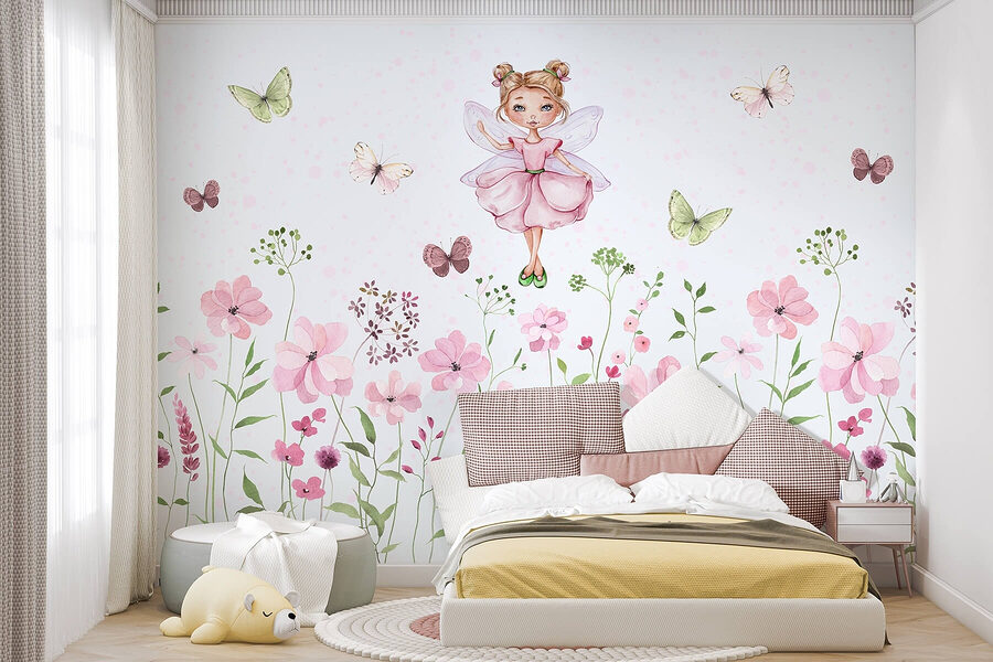 Transform any room into a whimsical escape with this enchanting wall mural featuring a fairy in a pink dress, twirling among delicate flowers. It’s like inviting a sprinkle of magic into your space—perfect for a nursery or a cozy reading nook. The soft watercolor style adds a gentle touch, making it easy on the eyes while still being a delightful focal point. Imagine cuddling up with a book, feeling like you’ve stepped into a fairytale. Those fluttering butterflies? Just the cherry on top—talk about a dreamy vibe!