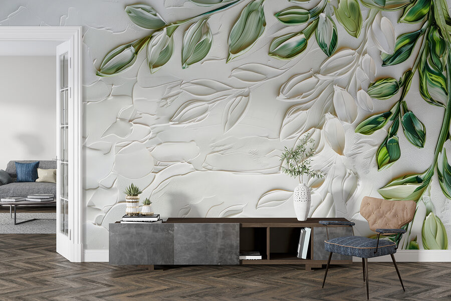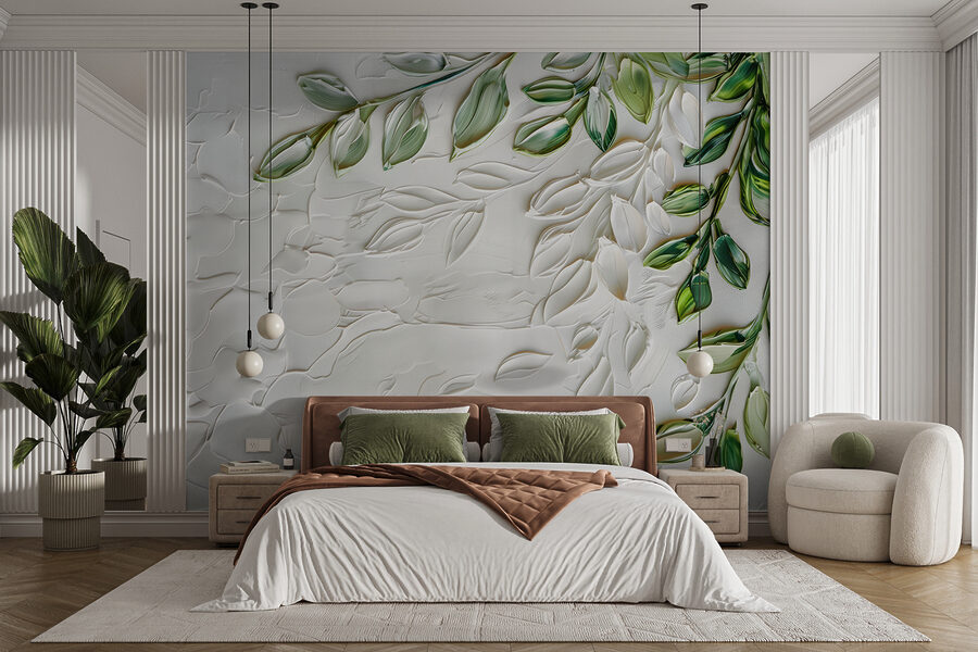 Imagine stepping into a room that feels like a gentle breeze in a sunlit garden. This mural, “Wall Murals White Surface with Green Leaves,” does just that. With its soft whites and rich greens, it brings nature indoors, creating an inviting vibe. Picture sipping your morning coffee with the peaceful energy of leaves rustling in the wind, right on your walls! It’s versatile—perfect for a cozy reading nook or even a lively dining space. Each leaf seems to whisper secrets of the outdoors, making the room feel alive. It’s not just decor; it’s an experience that brightens any day!