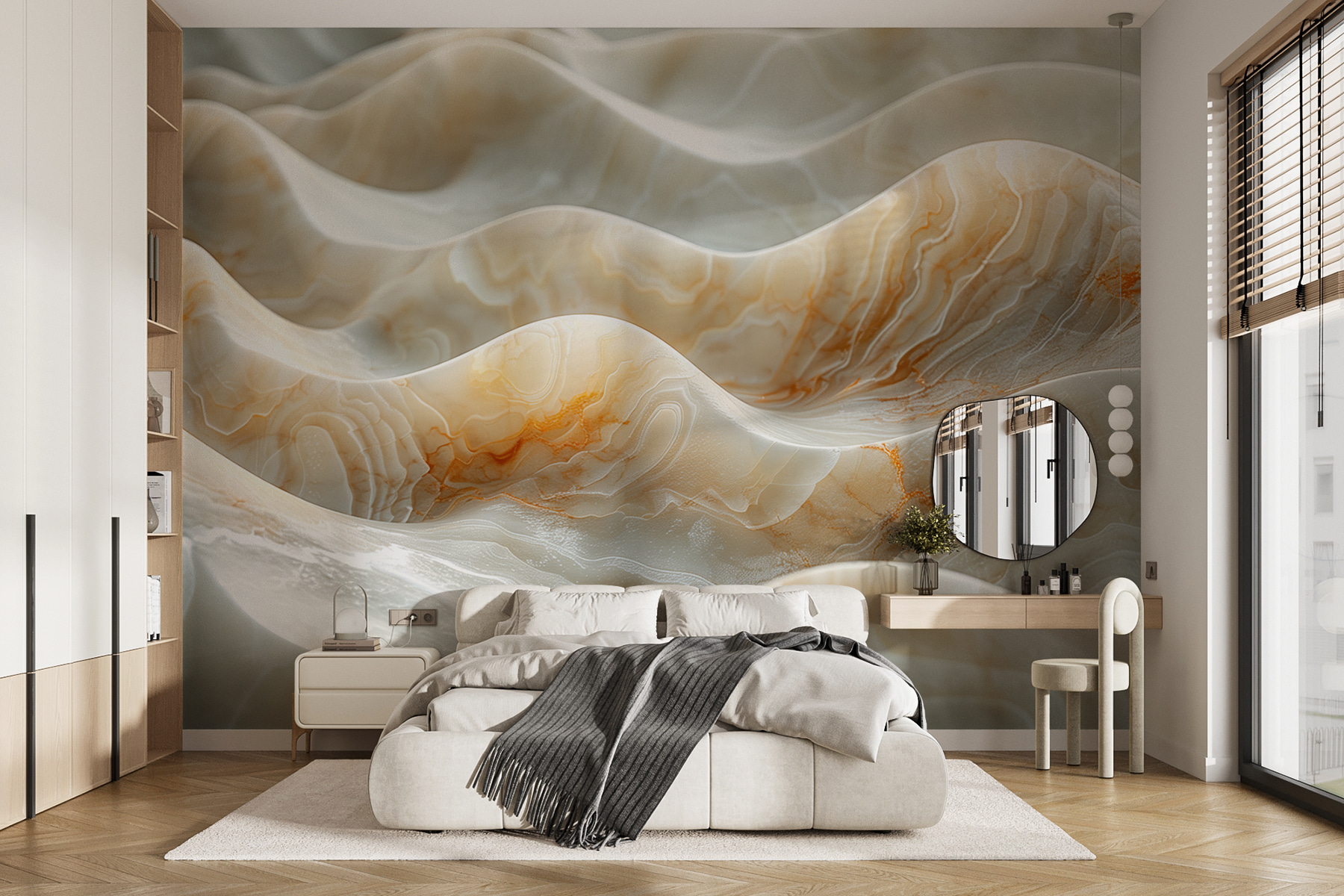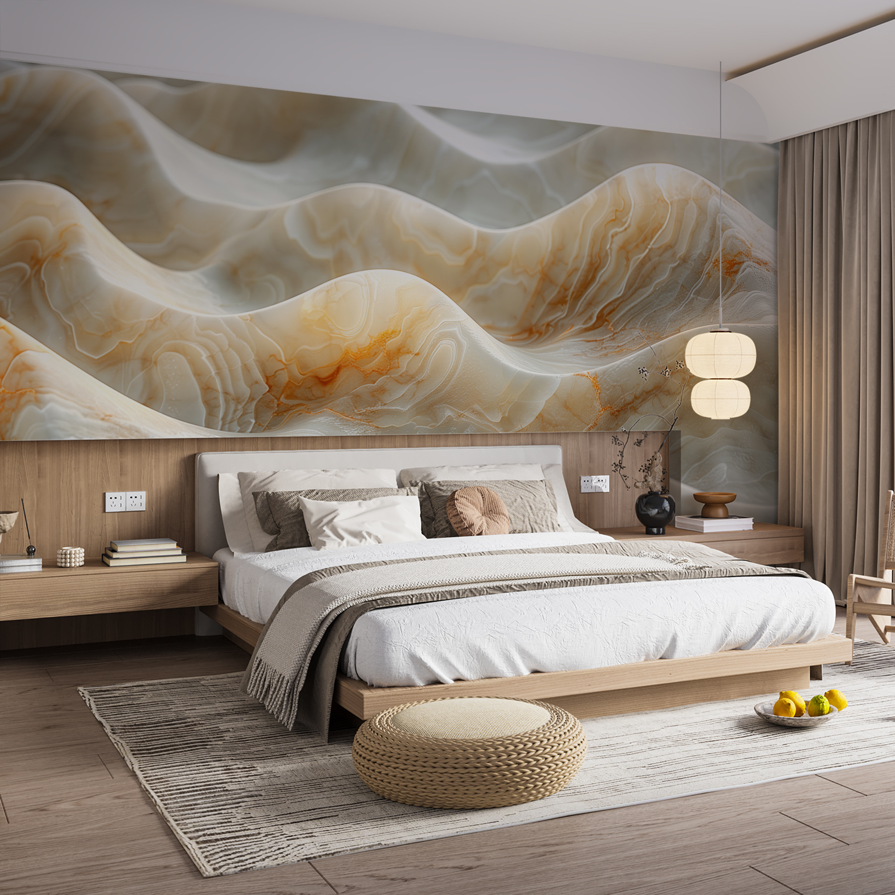 Transform your space with the “Flowing Marble Through Light” wall mural—it’s like rolling waves of elegance right on your wall! Picture a serene escape where light dances across smooth marble textures, creating an inviting atmosphere. Whether it’s your living room or a cozy reading nook, this mural brings a touch of nature’s beauty inside. Imagine sipping coffee while basking in the warm glow it casts, feeling a bit like royalty. Perfect for those who appreciate cool designs that spark conversation! Who wouldn’t be enchanted by these marble swirls and soft hues? It’s not just decor; it’s a mood setter.