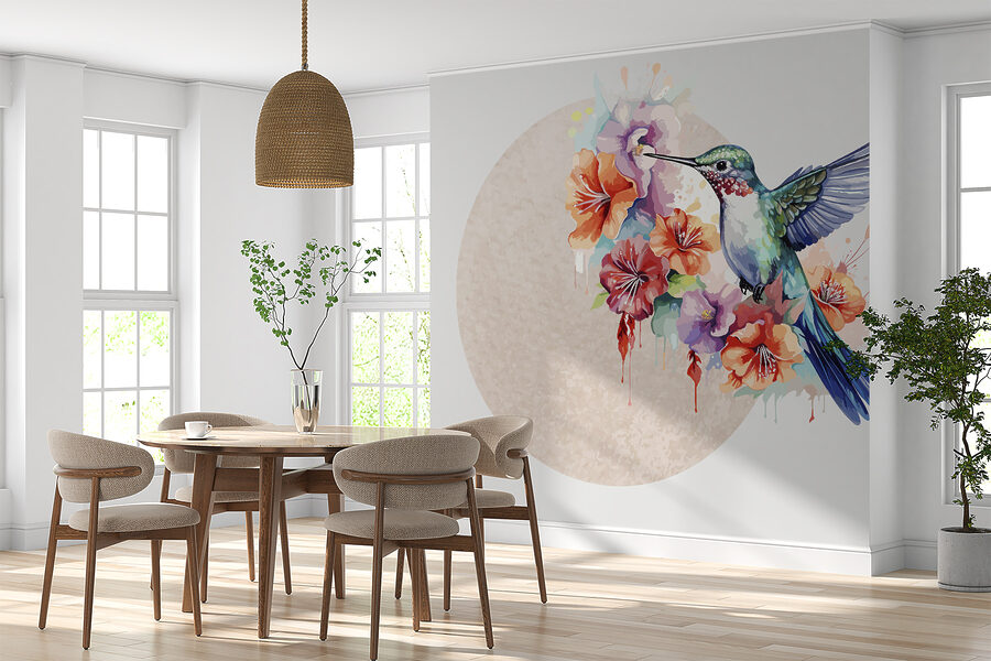 1 review for Wall murals Hummingbird flying over flowers