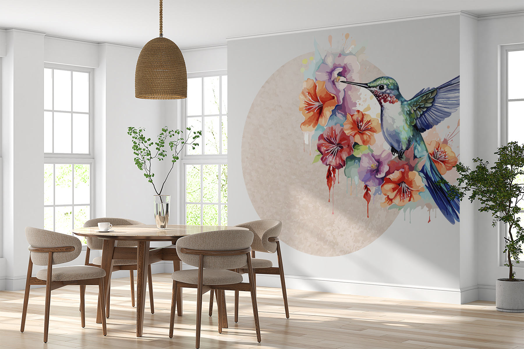 Transform any wall into a vibrant oasis with this stunning mural featuring a hummingbird dancing among a flurry of colorful flowers. It’s like bringing a slice of nature indoors—who wouldn’t love that? Imagine waking up to this cheerful scene every day, the colors popping like a festival in spring. The intricate details give it life, making it easy to forget it’s just a mural. Perfect for brightening a living room or adding a playful touch to a bedroom. It’s a little piece of joy that’ll have guests doing a double-take! You’ll want to grab a drink and settle in, feeling like you’re in a sunlit garden every day. Who knew a wall could spark such happiness?