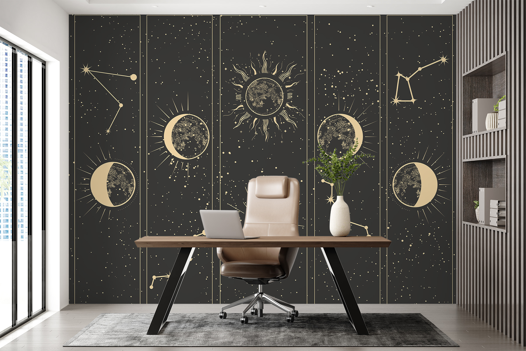 Transform any space with this stunning mural featuring moons and stars, perfect for lovers of nature and night skies. Imagine standing in a room filled with celestial wonders—those shimmering stars and mysterious moons might just inspire a bit of daydreaming. Whether it’s a playroom or your cozy reading nook, this design whispers adventure and magic. Every glance takes you on a cosmic trip. Friends will wow at the enchanting vibe, and who knows? You might even start naming constellations just for fun. Let the cosmos light up your walls!