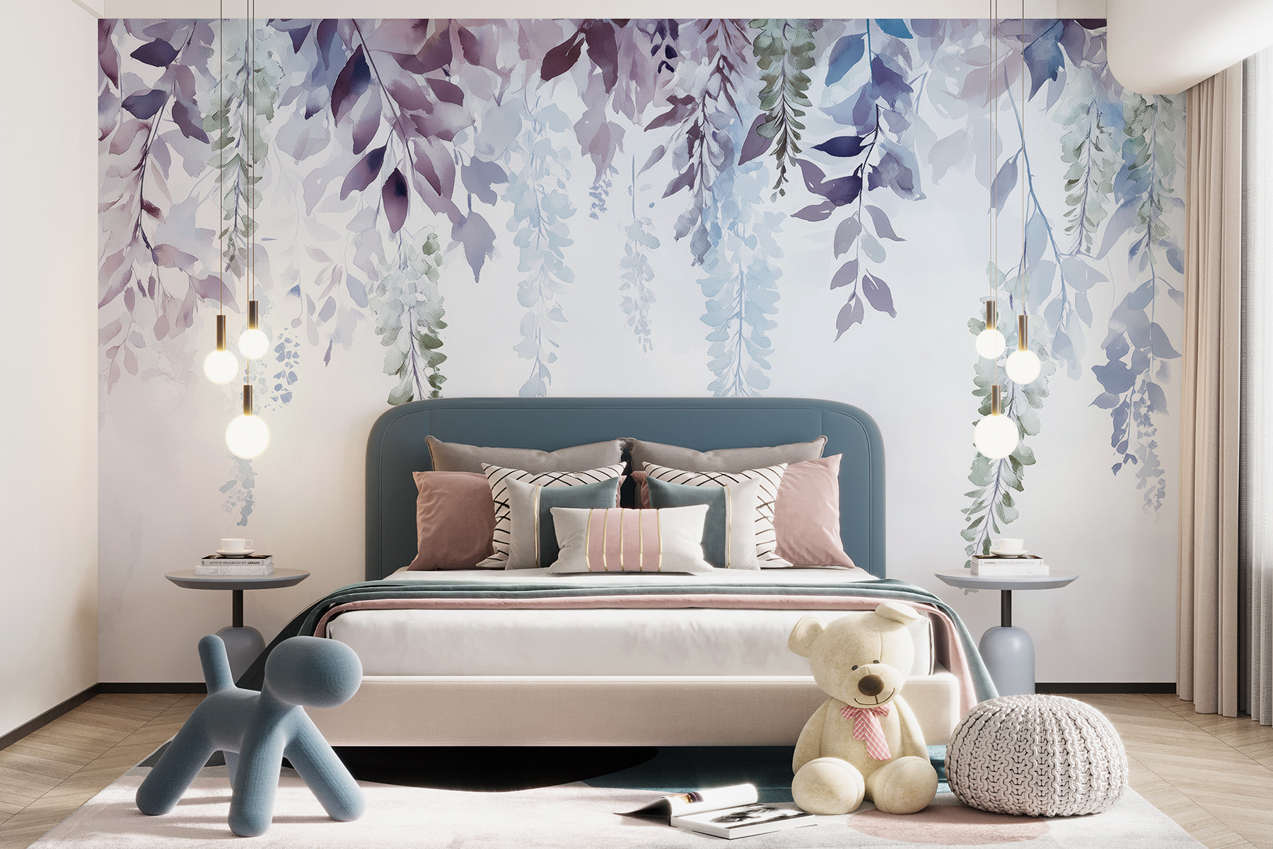 Transform your space with this enchanting wall mural featuring a dreamy cascade of leaves and flowers. Imagine stepping into a serene garden, where soft greens and delicate purples invite calm and creativity. It’s like bringing nature indoors without worrying about watering plants—who has time for that? Perfect for a cozy reading nook or a chic dining area, this mural adds a touch of elegance that makes even Monday mornings feel special. Plus, it sparks that feeling of warmth, like sipping tea on a lazy afternoon. Embrace the beauty of nature, right on your walls!