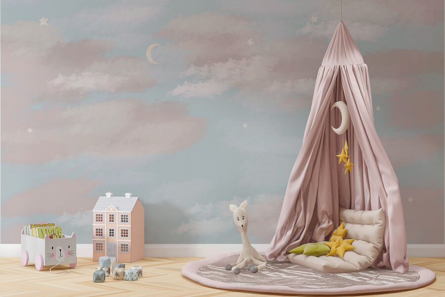 Imagine stepping into a room that feels like a gentle breeze in spring—this mural brings that vibe right to your walls! “Blue Sky with Clouds and a Crescent Moon” isn’t just a decoration; it’s like having a dreamy sky day every day. Soft hues of blue mingle with whispery clouds and a serene crescent moon, inviting calmness into any space. Perfect for a cozy reading nook or a playful kids’ room, it sprouts imagination like a wildflower in spring. Just think: friends popping by, and their eyes lighting up at this charming mural. It’s like nature’s art, right at home. Bring in some pillows, a cup of tea, and let the day drift away!