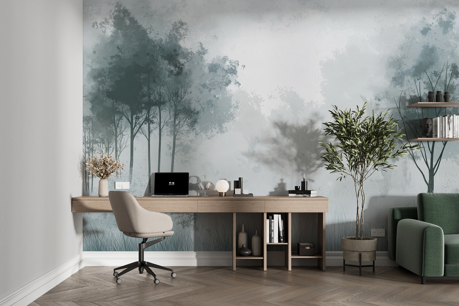 Transform your space with the enchanting “Foggy Forest with Trees” wall mural. Imagine stepping into a serene woodland, where soft fog wraps around slender trunks, creating a tranquil escape right in your home. This mural whispers peace and calm, perfect for a cozy reading nook or a quiet bedroom.