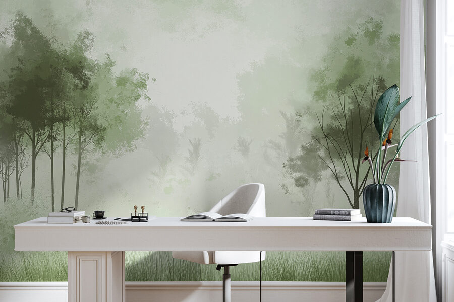 Transform any space into a tranquil retreat with the “Foggy Forest with Trees” wall mural. Imagine walking into a room where the soft, ethereal fog wraps around whispering trees, instantly calming your busy mind. It’s like stepping into a gentle embrace from nature, without the bugs! Perfect for a cozy reading nook or to create a peaceful vibe in a bedroom, this mural invites daydreams of serene strolls through the woods. Plus, the muted greens bring a splash of life without screaming for attention—great if you want to keep things chill. Your walls will thank you!