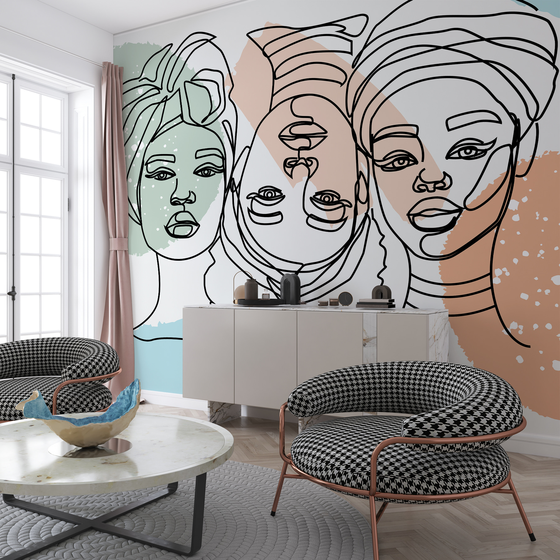 Brighten up any space with the “Group of Women’s Faces” wall mural, a celebration of unity and beauty! The clean lines and soft colors gently pull you in, making it impossible to look away. Imagine walking into a room and being greeted by these expressive faces—each one seems to whisper stories of strength and grace. It’s like having a cozy chat with friends every time you step into the room. Perfect for a living area or a creative workspace, this mural adds a touch of warmth and personality. It’s more than just decor; it’s a vibe, a feel, and yes, maybe even your new favorite wall.