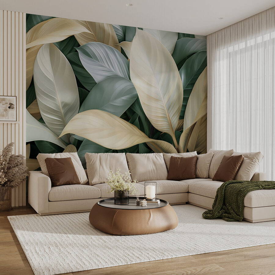 Bring the serene vibes of nature indoors with “Lush Leaves in Soft Hues.” It’s like inviting a gentle forest breeze right into your living space. Picture this: a cozy nook filled with sunlight, where these beautifully detailed leaves create a calming backdrop. The soft greens and warm golds wrap around your walls, almost like a warm hug after a long day. It’s not just decor; it’s a mini-retreat for the eyes. Whether you’re sipping tea or diving into a good book, these murals set the mood just right. Who knew relaxation could look this good? Perfect for those with a love for whimsy and greenery!