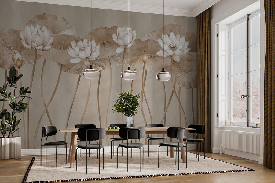 Transform any room into a serene oasis with the Ethereal Lotus in Monochrome Hues mural. Imagine walking into your space and being greeted by these delicate lotus blossoms, standing tall on their graceful stems. It’s like nature whispered its calm, inviting you to slow down and breathe. This mural isn’t just decor; it’s a mood booster, making every gathering feel a little more special. Picture a cozy evening with friends, laughter echoing off these subtle hues, or a quiet moment with a book as the sunlight dances across the petals. Who knew a wall could feel so alive? Perfect for flower lovers and anyone wanting a touch of tranquility without the maintenance. It’s a win-win!