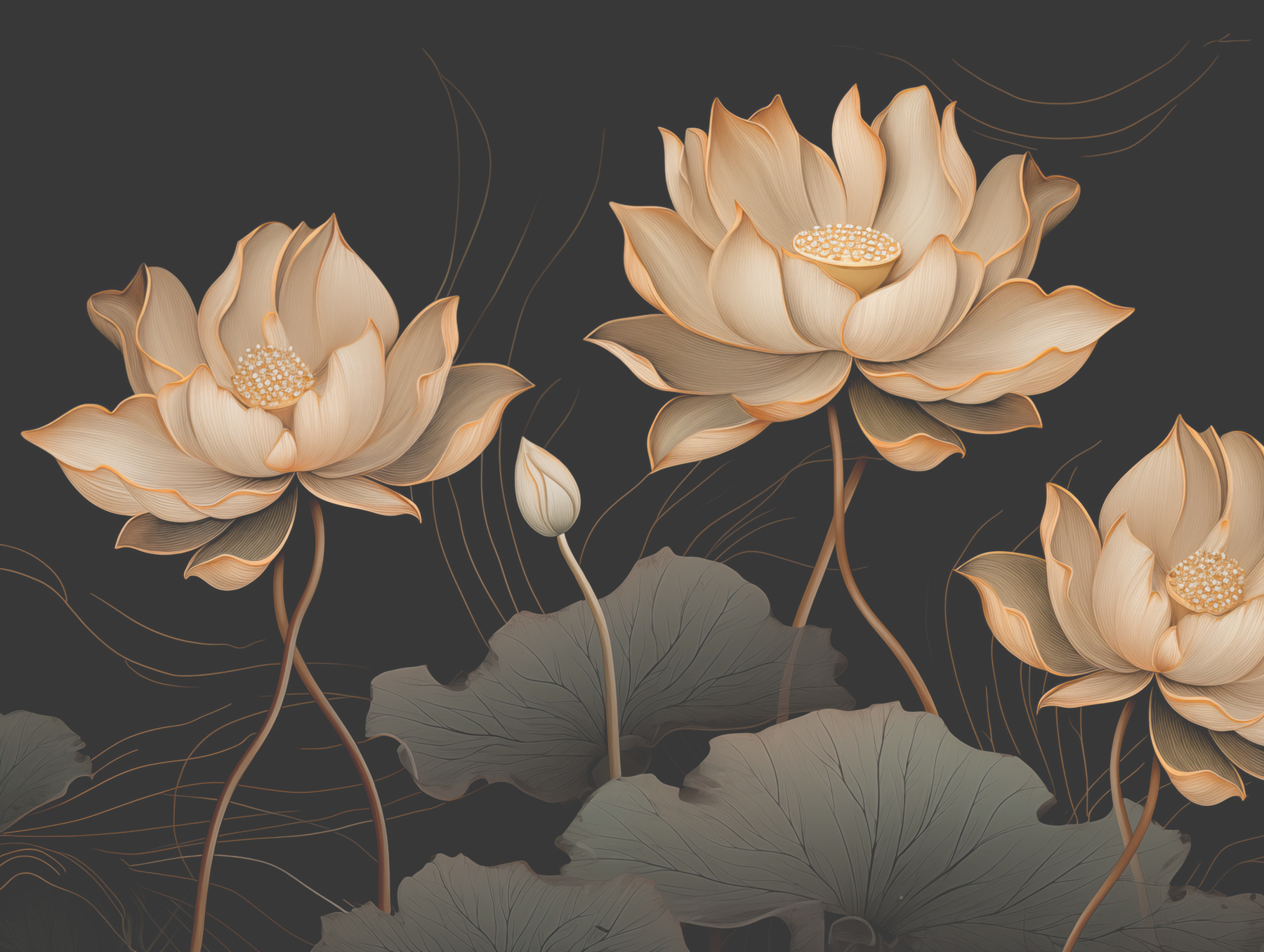 Transform your space with the enchanting “Elegant Lotuses Bloom in Darkness” wall mural. Just imagine stepping into a room where these exquisite blossoms seem to thrive in a whisper of night—a perfect blend of elegance and tranquility. The soft, warm hues of the lotus flowers pop against the deep backdrop, effortlessly creating a serene vibe.