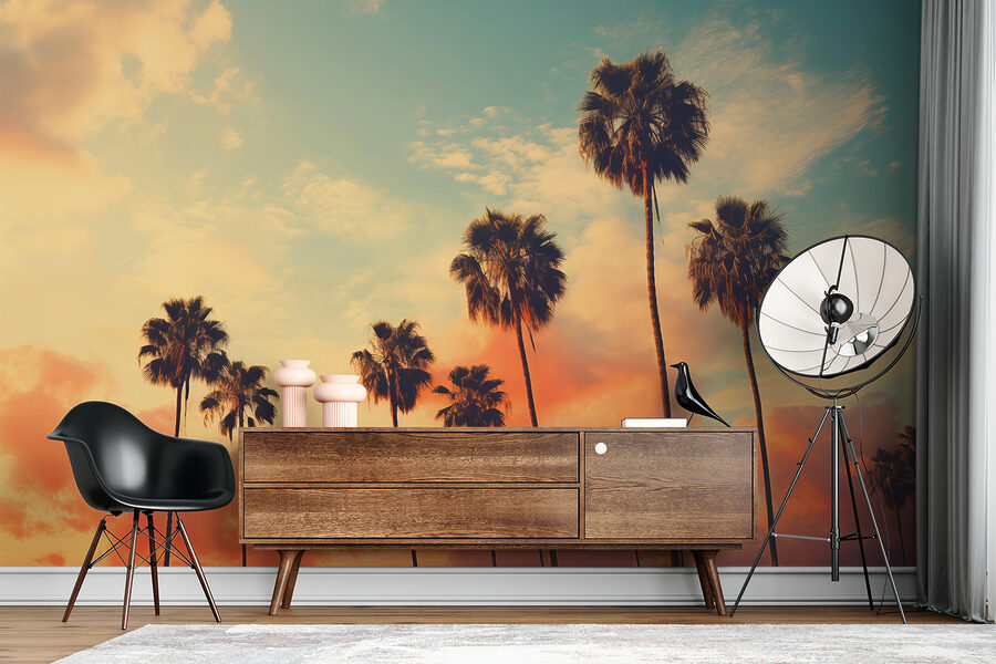 Transform any space into a tropical paradise with this stunning mural featuring a group of palm trees set against a vibrant sunset. Just picture it—you’re sipping a drink (with an umbrella, of course), and the colors dance on the walls like a summer evening. This piece captures that warm, lazy vibe, perfect for living rooms, bedrooms, or even a cozy reading nook. Friends will stroll in and instantly feel the laid-back charm. It’s like bringing a beach vacation home, minus the sand in your shoes. Let the palm trees whisper sweet nothings of relaxation into your everyday life.