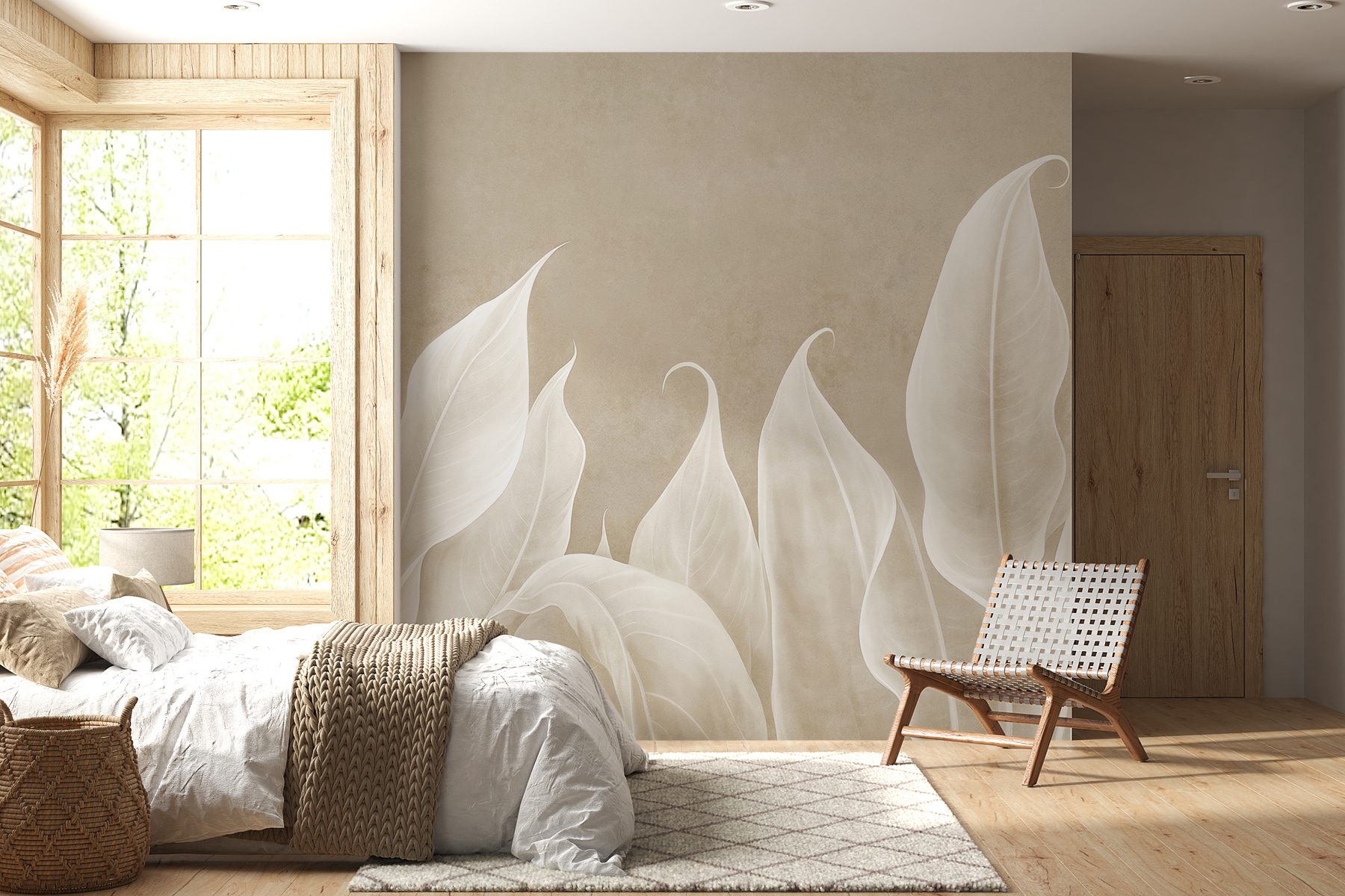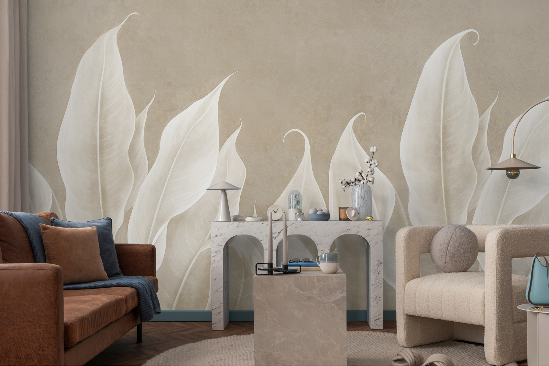 Transform any room with the “Elegant Dance of Creamy Leaves.” This mural whispers serenity, making you feel like you’re in a tranquil forest retreat. Imagine sipping your morning coffee, surrounded by soft, flowing leaves that seem to sway gently in the breeze. The muted tones add warmth, bringing a touch of nature indoors without overwhelming the space. It’s perfect for adding that subtle wow factor. Whether it’s a cozy reading nook or a chic dining area, this mural invites calm vibes and endless compliments. Just picture it—your friends walking in, eyes wide, marveling at how you’ve turned a boring wall into a peaceful escape. What’s not to love?