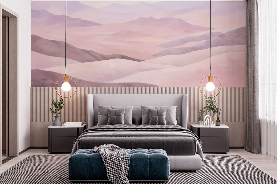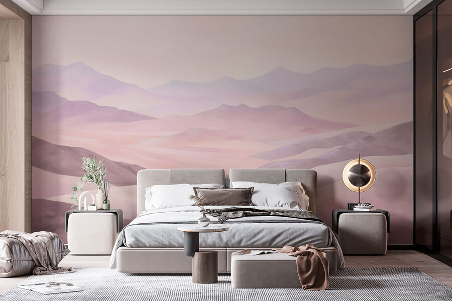 Transform your space with this enchanting “Wall Murals Landscape of Hills and Mountains.” It’s like bringing a bit of serene nature indoors—without those pesky bugs. Imagine sipping your morning coffee surrounded by soft, dreamy hills in muted pastels. The gentle ripples of color create a calming vibe, perfect for a cozy reading nook or that home office that could use a little TLC. Friends will wonder if you’ve secretly moved to the countryside. It’s a reminder of tranquil landscapes and lazy days—perfect for anyone dreaming of adventure, or just a cozy night in. Hang it up and let those mountains do the talking!