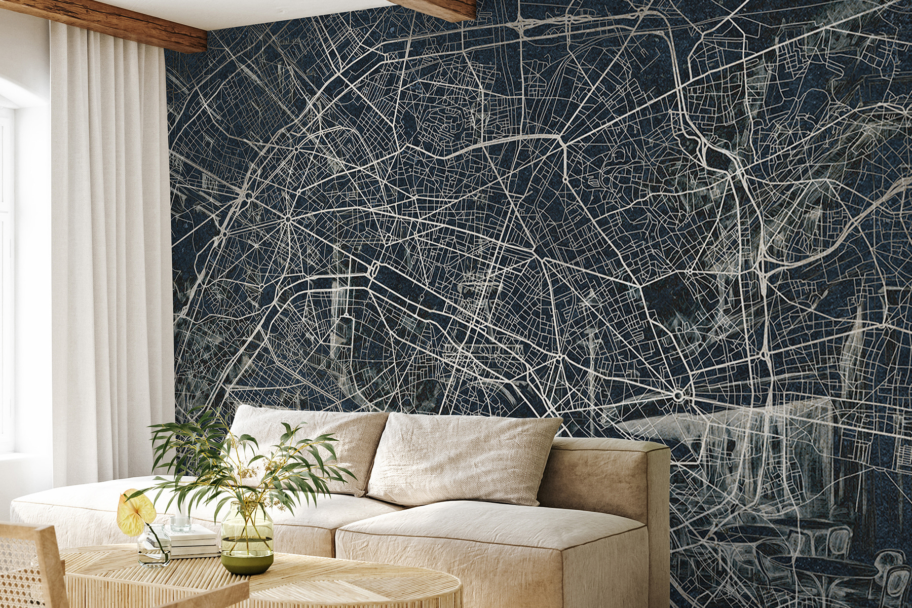 Transform your space with this striking wall mural that maps out a vibrant city, adding a chic, urban vibe to any room. Imagine stepping into your living area, surrounded by the intricate paths and hidden corners of a bustling metropolis. It’s like having a creative navigator at home! Ideal for that empty wall that just can’t seem to dance, this mural sparks conversation and curiosity.