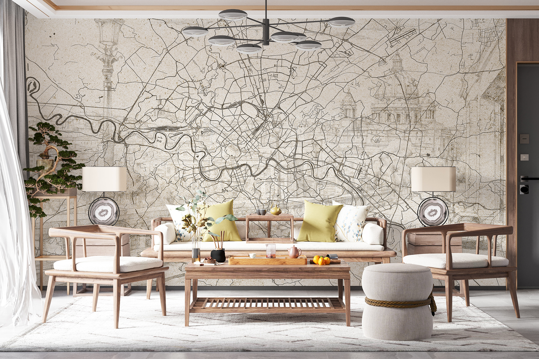 Transform any space into a cozy corner of urban charm with the “Wall Murals Map of a City.” Imagine sipping coffee while gazing at this intricate map design, its swirling lines telling stories of streets well-traveled. It’s not just a decoration; it’s like hanging a piece of adventure on your wall.