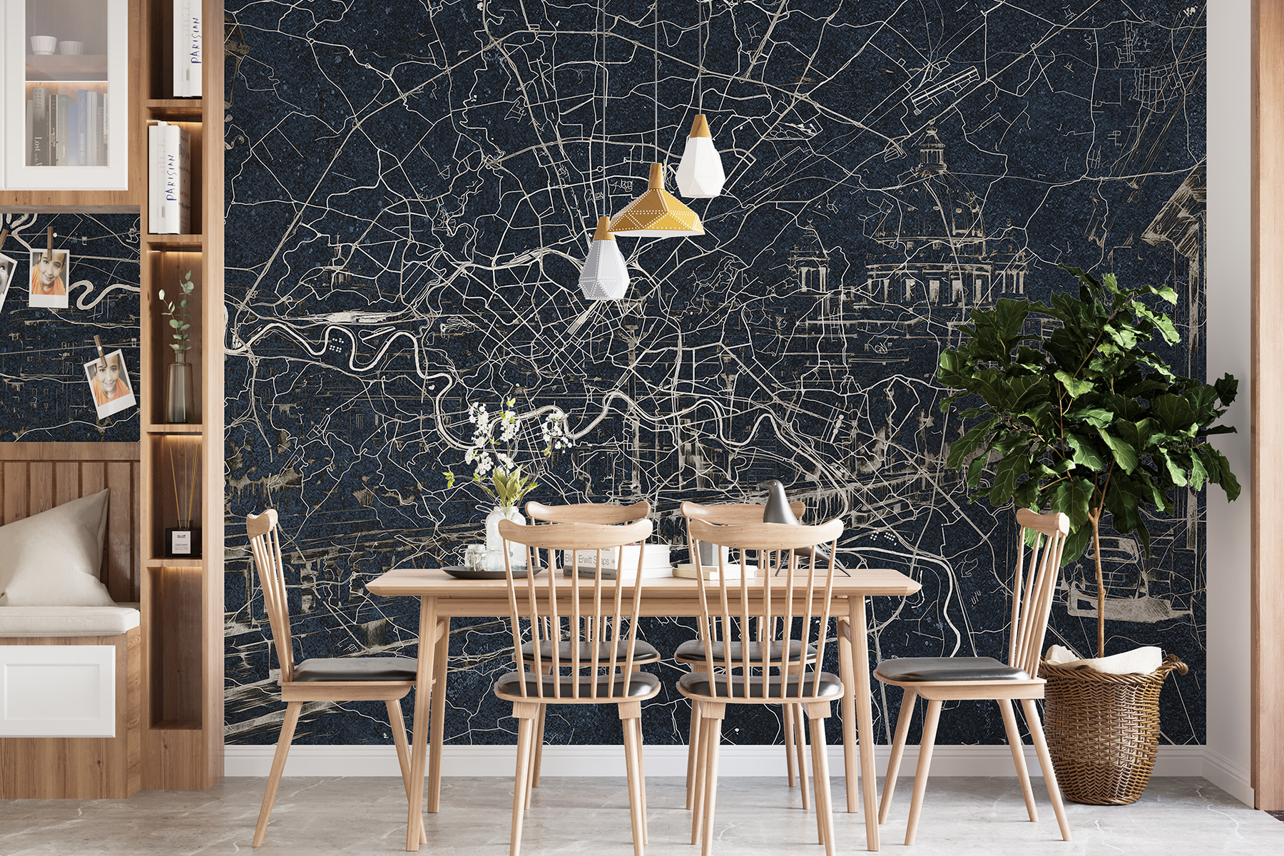 Transform any space into an urban oasis with this stunning wall mural featuring a city map. It’s not just a decoration; it’s an adventurous conversation starter. Picture it: lounging on the couch, friends leaning in to trace routes on the map with their fingers, sharing stories of late-night escapades or dream vacations. The sleek, dark background pairs perfectly with any color scheme, adding a touch of sophistication and mystery. It’s like bringing a slice of the city’s heartbeat right into your home. Who knew home decor could inspire wanderlust?