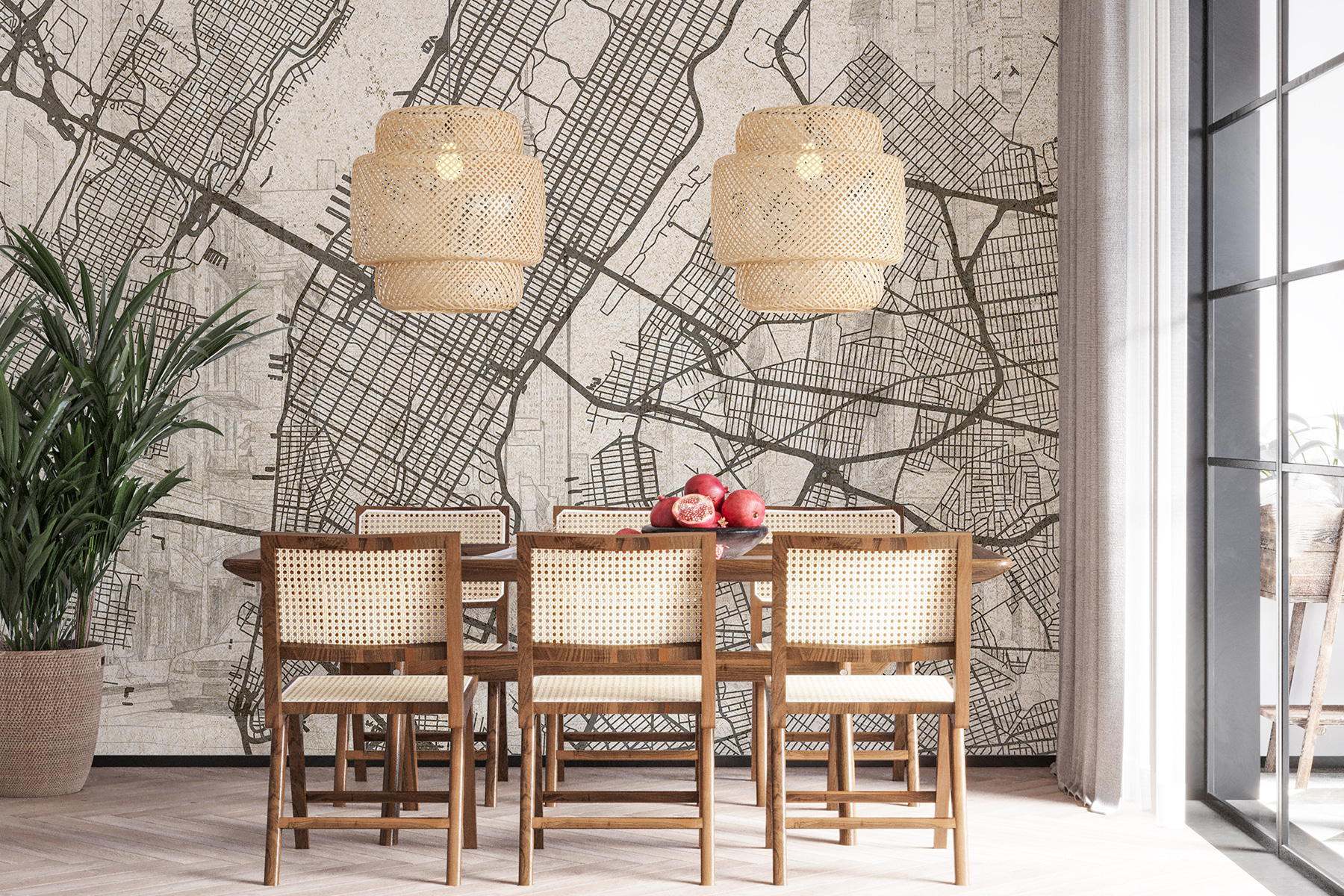 Transform your space with this captivating wall mural of a city map! It’s not just a map; it’s a journey waiting to unfold on your wall. Imagine sipping coffee, lost in thought as you trace routes and roads, maybe even planning your next adventure. The soft, muted tones have a comforting vibe, making any room feel warm.
