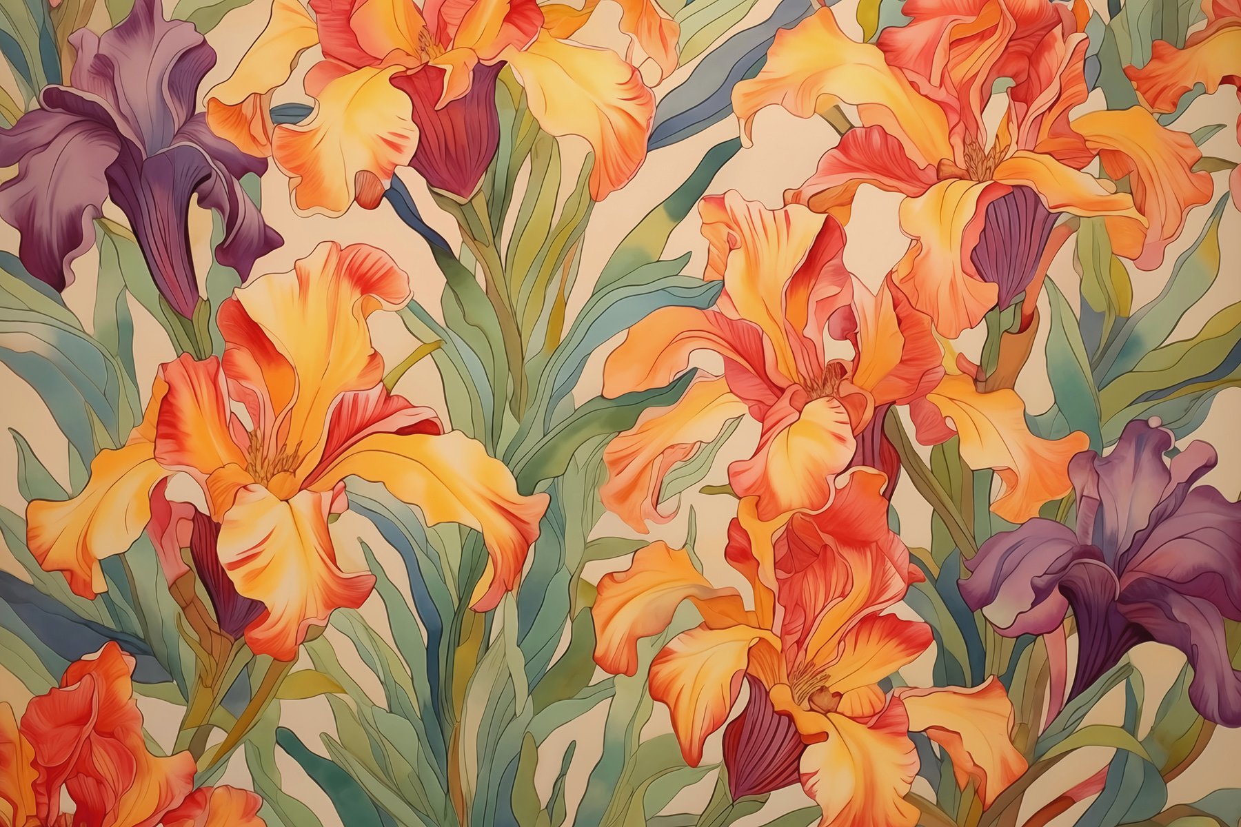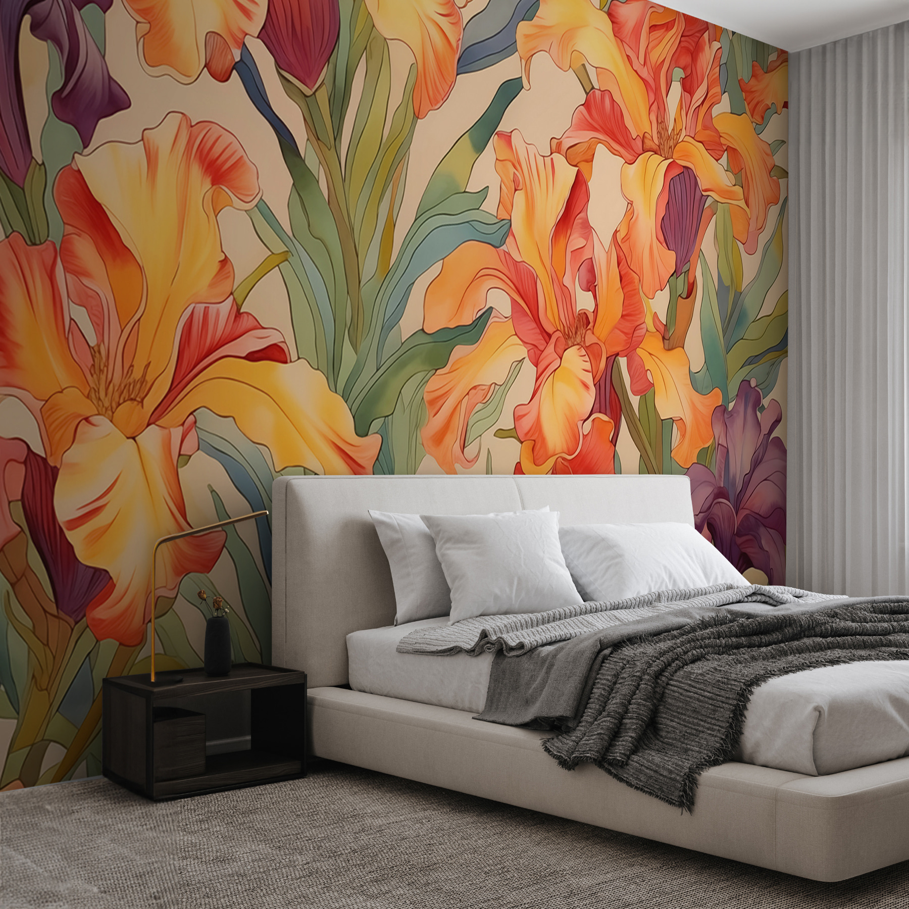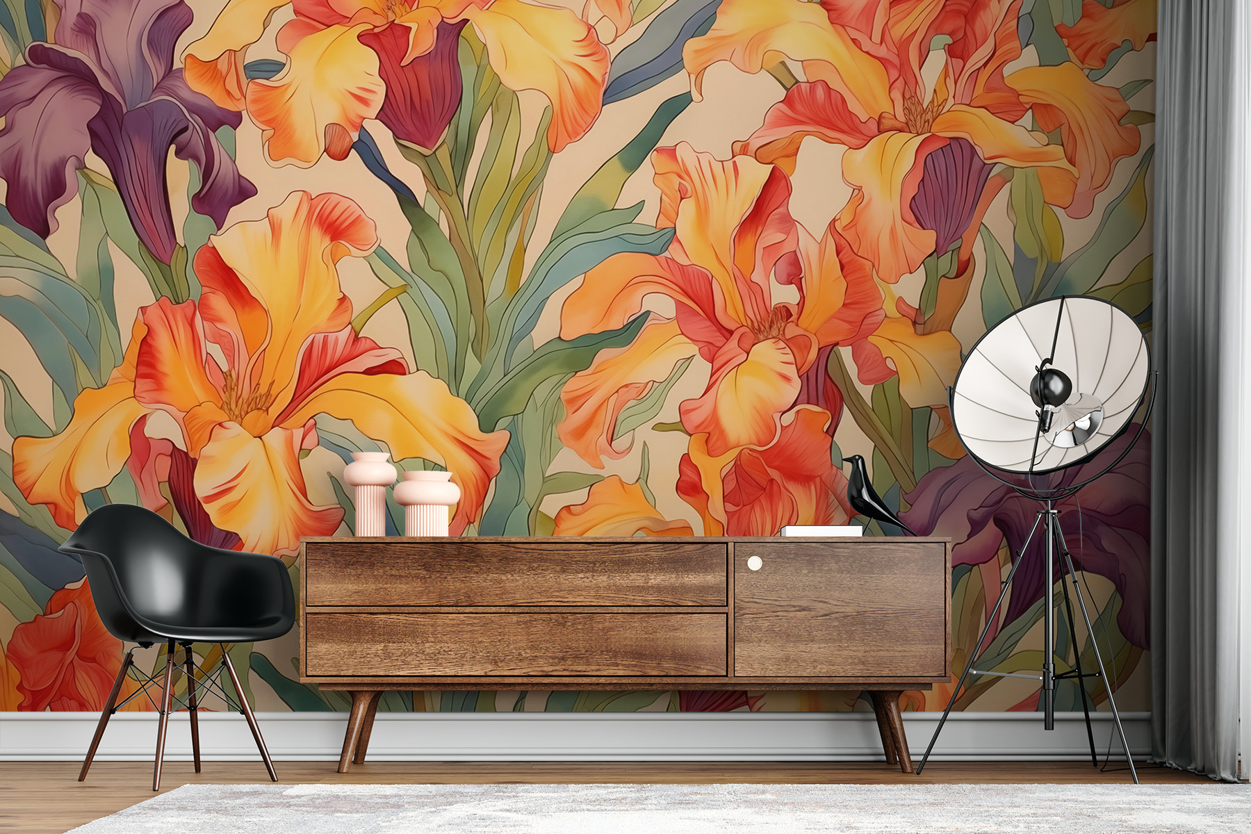 Transform any room with the “Iris Blooms in Vibrant Hues” mural—a splash of nature’s palette right on your walls. Picture this: sunlight streaming in, the colors come alive like a garden in full bloom. Those bold yellows and purples are not just flowers; they’re a mood lifter, a conversation starter! Imagine sipping coffee or daydreaming in front of it—just you and those stunning irises, all beautifully vibrant and ready to brighten the dullest of days. This mural isn’t just decor; it’s a mini escape to a floral wonderland. Get ready to feel inspired every time you walk by!