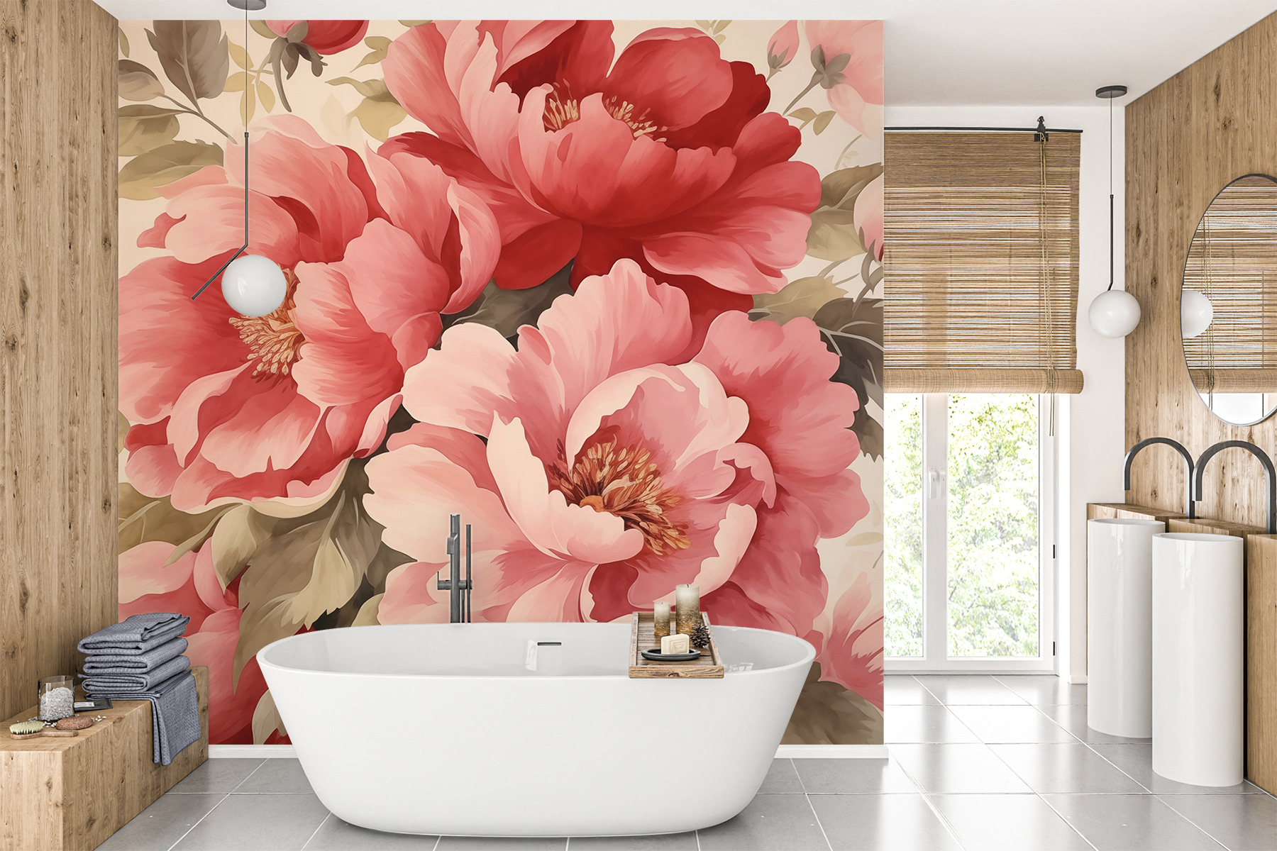 Transform any space with the “Elegant Blooms in Soft Hues” mural. Imagine waking up to a burst of gorgeous, oversized flowers splashed across your wall, bringing a hint of nature right into your home. The soft pinks and warm reds create a cozy vibe, like a gentle hug after a long day. It’s perfect for a living room or even a dreamy bedroom accent. Just picture sipping your morning coffee while those blooms cheer you on! This mural isn’t just decor; it’s a mood-lifter, sparking joy and light in every glance. A true treat for the senses—nature’s beauty at your fingertips!