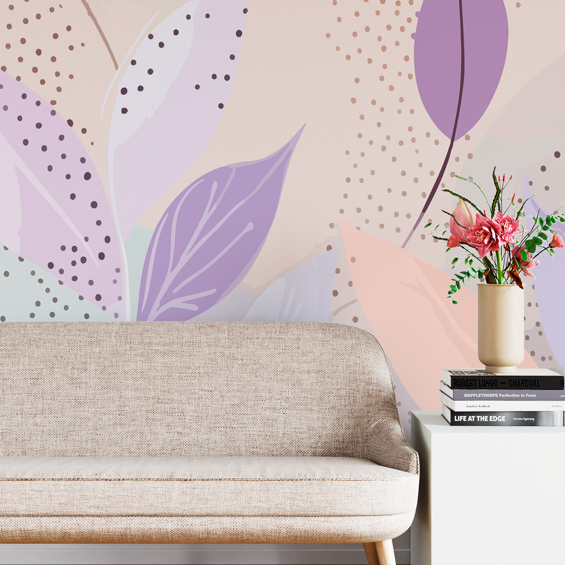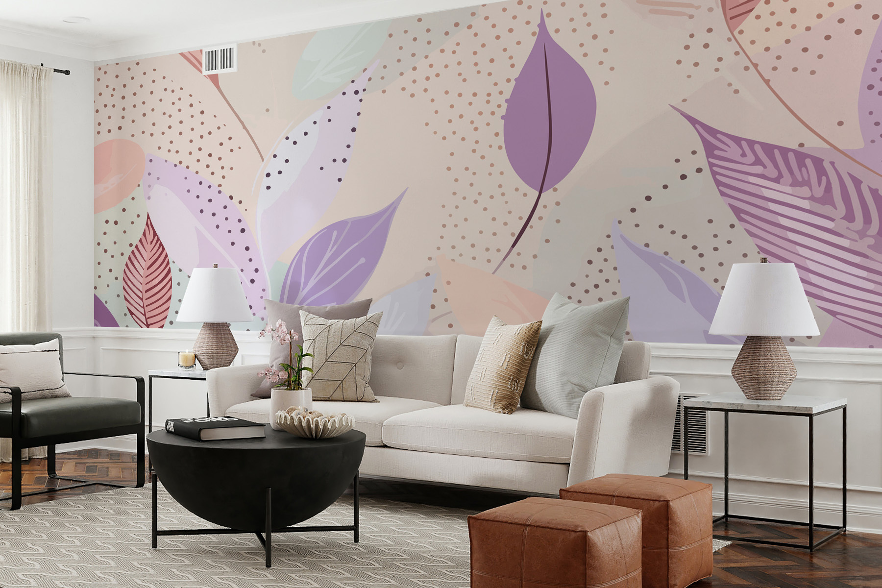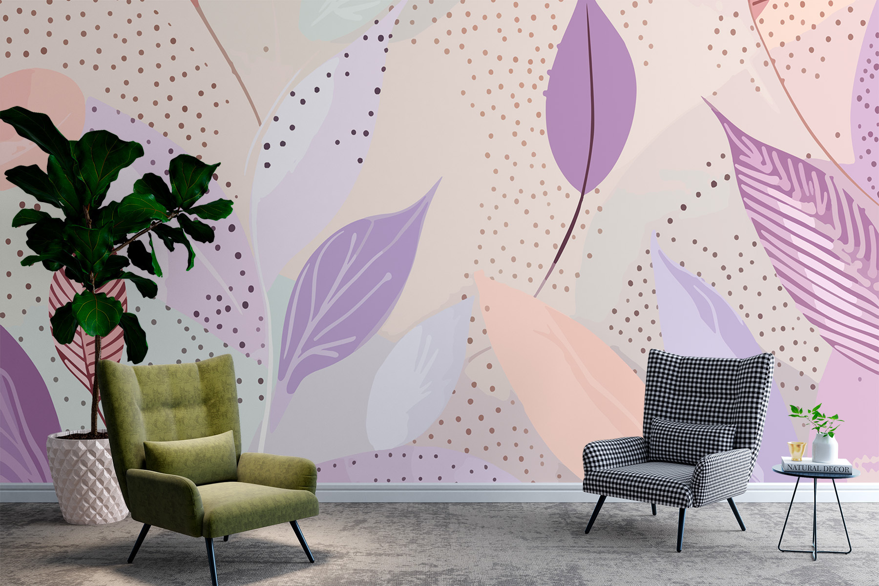 Transform your space into a nature-inspired haven with the “Wall Murals Leaves and Dots in Muted Tones.” This mural is like a gentle breeze on a Sunday morning—soft colors of lavender, blush, and mint swirl around dotted backgrounds, creating a calm vibe. Imagine sipping coffee while gazing at those dreamy leaves; it’s basically a mini-vacation right on your wall! Perfect for cozy corners or that awkward spot that always feels a bit bland. Plus, it’s a great conversation starter—who knew leaves could be so chic? Whether it brings back memories of summer days or just adds a fresh pop of style, it’s sure to breathe life into any room.