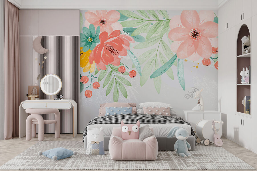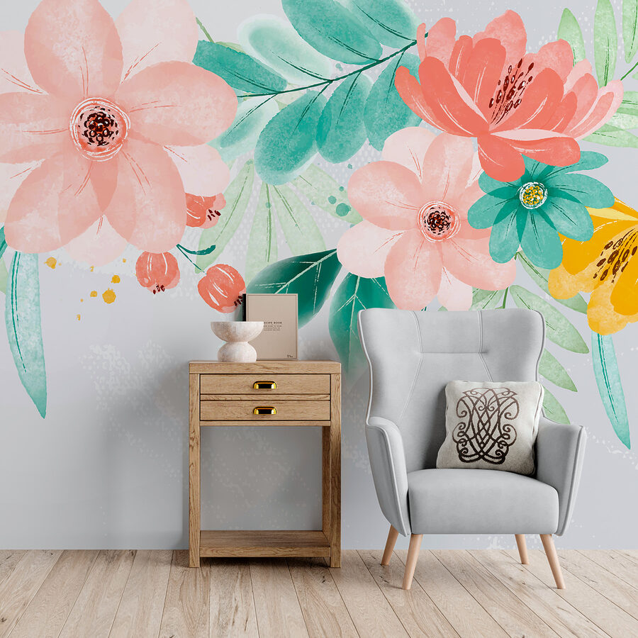 Brighten up any space with the “Blossoming Pastels Dance on Canvas” mural, where vibrant florals meet a dreamy background. Imagine walking into a room and being greeted by an explosion of soft pinks, joyous yellows, and lush greens—it’s like having a spring garden all year round! Perfect for a cozy nook or a lively living room, this mural invites warmth and cheer. Just picture sipping your morning coffee surrounded by these blooms, feeling a burst of happiness. It’s not just decor; it’s an everyday reminder to stop and smell the flowers, right from the comfort of home!
