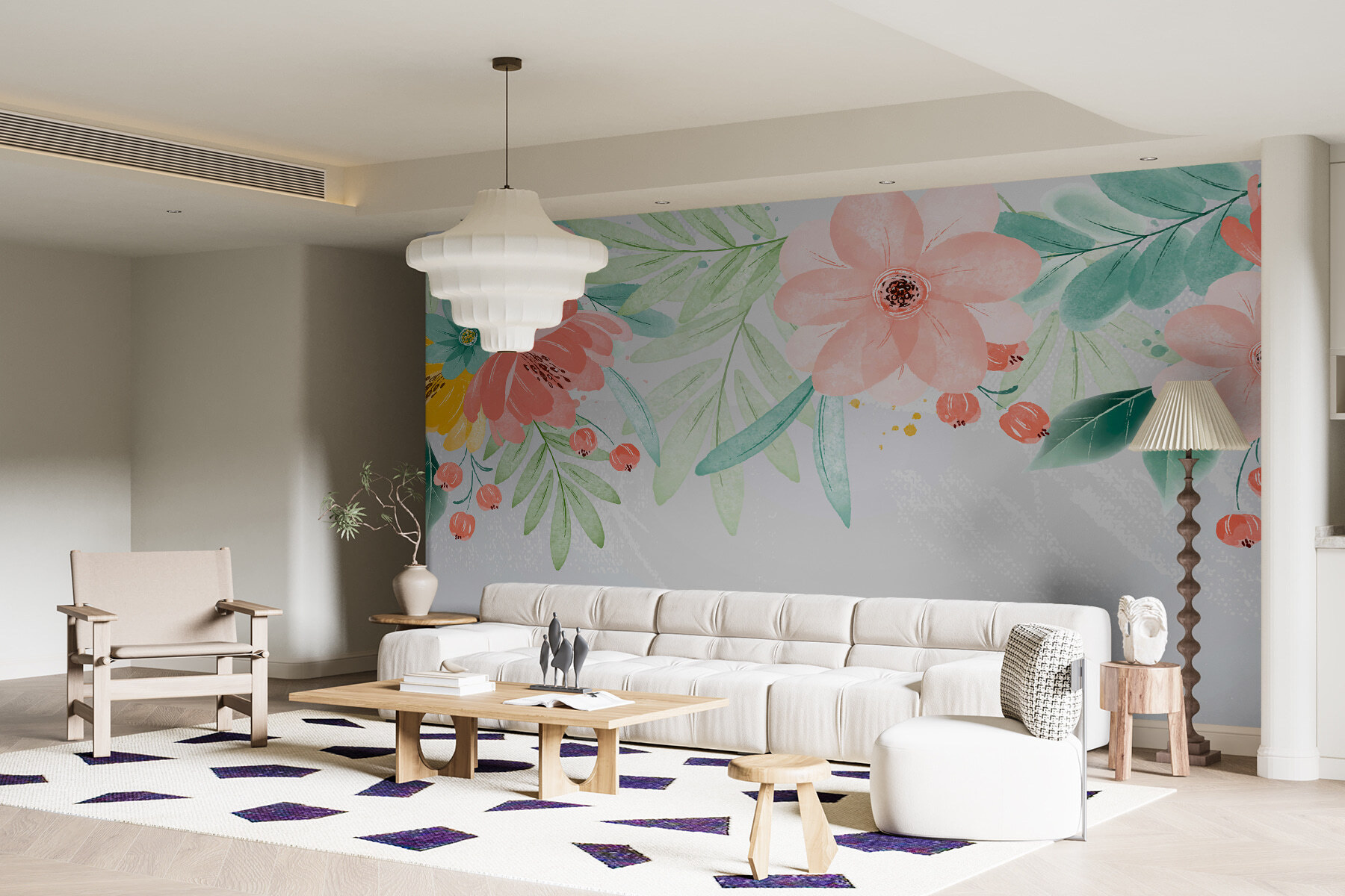 Brighten up any space with the “Blossoming Pastels Dance on Canvas” mural, where vibrant florals meet a dreamy background. Imagine walking into a room and being greeted by an explosion of soft pinks, joyous yellows, and lush greens—it’s like having a spring garden all year round! Perfect for a cozy nook or a lively living room, this mural invites warmth and cheer. Just picture sipping your morning coffee surrounded by these blooms, feeling a burst of happiness. It’s not just decor; it’s an everyday reminder to stop and smell the flowers, right from the comfort of home!