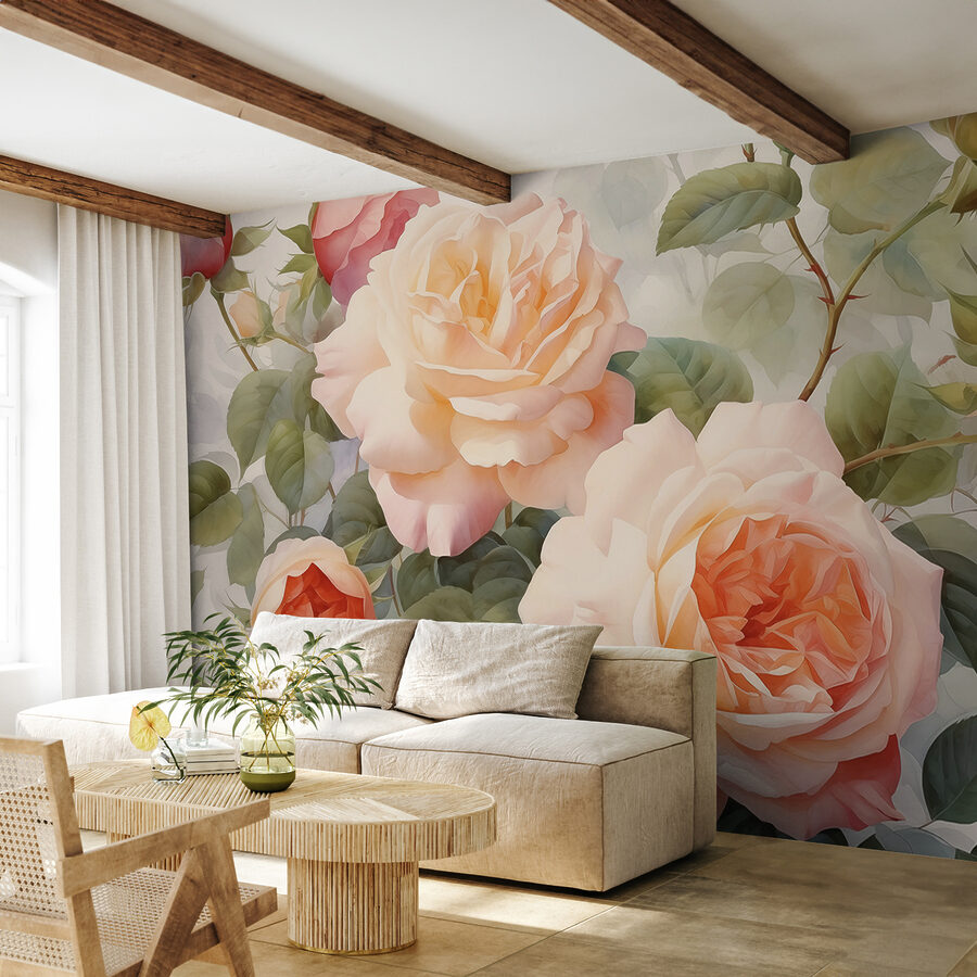Transform your space into a serene garden with this delightful wall mural featuring soft pastels and blossoming flowers. Imagine waking up to the gentle hues of roses in full bloom, adding a sense of calm and beauty to your walls. It’s like having a breath of fresh air right inside your home, inviting warmth and joy every day. Perfect for a cozy nook or a lively living room, it’s a conversation starter too—who wouldn’t want to admire such a gorgeous scene? Say goodbye to plain walls and hello to a blooming paradise, where nature’s charm hangs effortlessly on your walls.