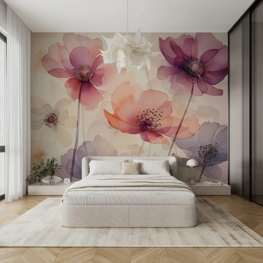 Transform your space with this charming mural that brings a delightful garden right into your home. Featuring a beautiful group of flowers on a soft white background, it’s like a breath of fresh air, perfect for brightening up any room. Imagine waking up to these dreamy blooms, their gentle colors whispering sweet nothings about spring, no matter the season outside. It’s hard not to smile when surrounded by such beauty. Whether you hang it in a cozy nook or as a stunning statement piece, it’s bound to spark joy and maybe even an impromptu dance party. Seriously, who wouldn’t feel inspired to twirl a little in the presence of such floral magic?