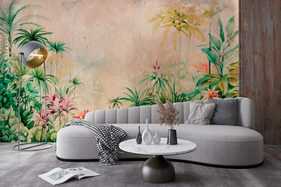 Transform any space with this stunning wall mural featuring an enchanting array of plants and flowers. Imagine walking into a room that feels like a serene jungle retreat—so calming! The soft hues blend beautifully, perfect for those who adore nature but maybe can’t keep a succulent alive (no judgment).
