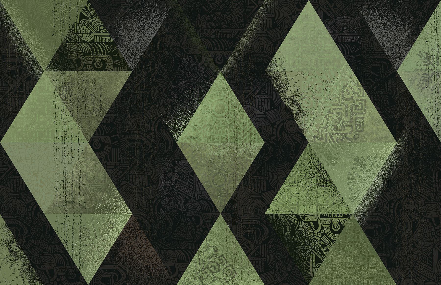 Transform your space with this eye-catching mural that dances between boldness and refinement. The black and green diamond pattern adds a playful twist, making any wall a conversation starter. Picture a cozy living room where friends can’t help but admire the unique art behind the couch, or a study that sparks creativity and inspiration. It’s like having an abstract painting come to life, inviting people in with its intriguing shapes and earthy tones. Get lost in the geometric charm—it’s not just decor; it’s an experience waiting to happen! Perfect for those who dare to stand out.