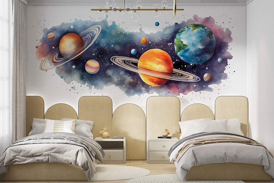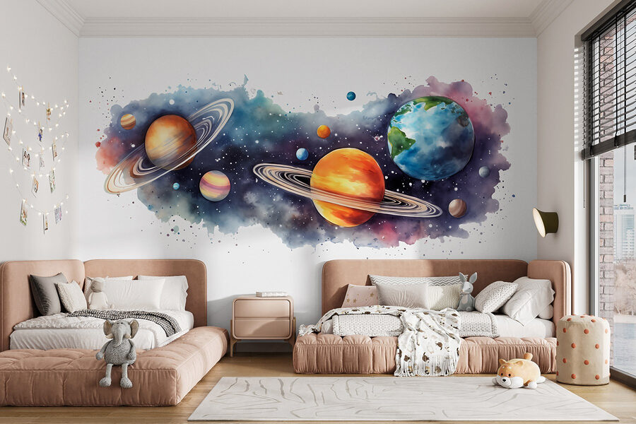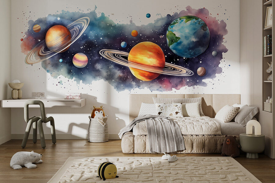Transform any room into a cosmic wonderland with this stunning mural of planets and stars floating in the vast universe. Imagine glancing up and seeing Saturn’s rings twinkling down at you, or Earth giving a cheeky little wink. This mural doesn’t just decorate; it inspires dreams of adventure and exploration. Perfect for a kid’s room or even a quirky office space, it adds a splash of color and creativity that can make anyone feel like they’re floating in space. Plus, who doesn’t want to feel a bit closer to the stars? So, grab your favorite rocket ship pillow and settle in for a journey through the galaxy!
