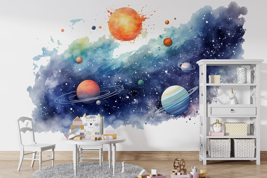 Transform any wall into a cosmic escape with the enchanting “Planets in the Sky” mural. Imagine drifting off to sleep under a night sky filled with swirling galaxies and colorful planets, each one whispering tales from the universe. This watercolor wonder wraps your room in a dreamy vibe, perfect for stargazers and daydreamers alike. Picture kids (or maybe even adults) getting lost in their thoughts, pointing out planets during quiet moments. It’s like an invitation to adventure without leaving home—who wouldn’t want that? Bring the universe indoors and let imagination take flight!