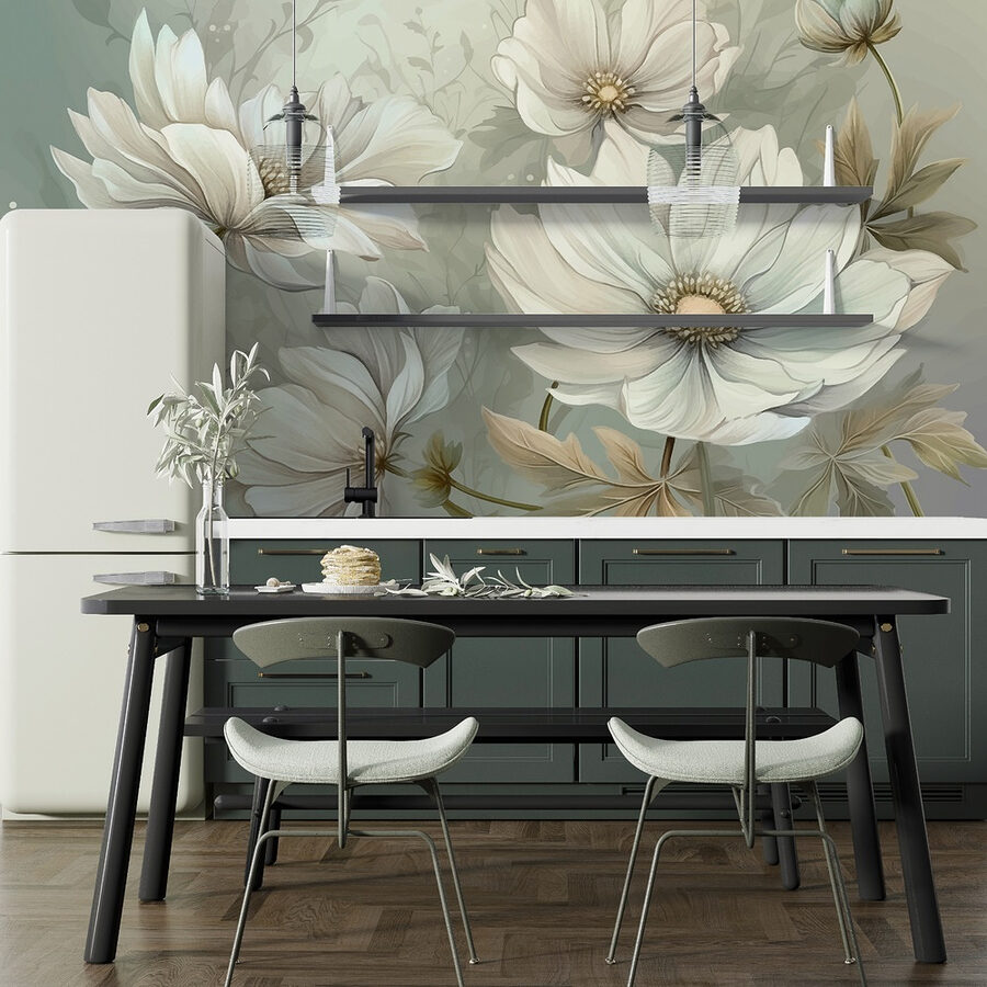 Transform any room with “Delicate Blooms in Soft Hues,” a wall mural that whispers elegance and charm. Picture this: a gentle breeze of fresh blooms wrapping around your space, creating a serene escape that’s almost dreamlike. Those soft colors? Perfect for brightening up a gloomy corner or adding a touch of cozy to a modern room. Imagine sipping tea and feeling like you’re in a tranquil garden, even if you live in an apartment. And let’s be honest—a little floral magic never hurt anyone! This mural isn’t just decor; it’s a cozy hug for your walls.